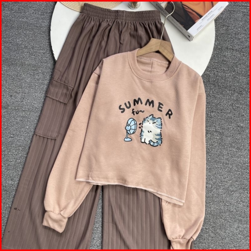 Violine Store - Oneset Wanita Kekinian Sweater Lucu Kulot Cargo Kece Outfit Korean Style Kekinian