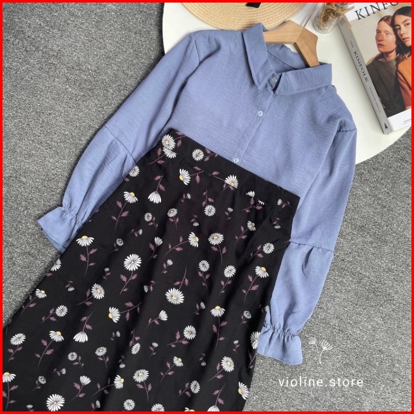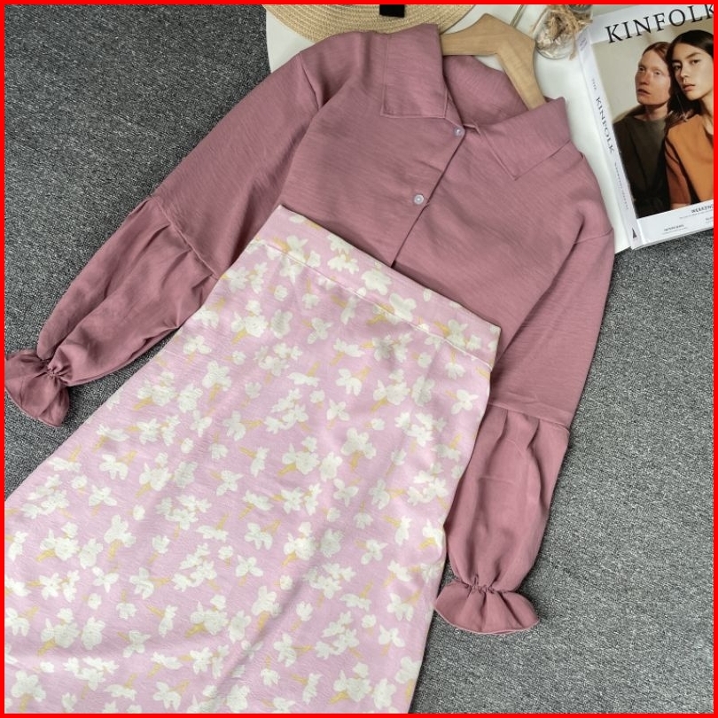 Violine Store - Oneset Wanita Kekinian 2025 Atasan Crinkle Bawahan Rok Crinkle Motif Lucu Korean Style Outfit Hangout He