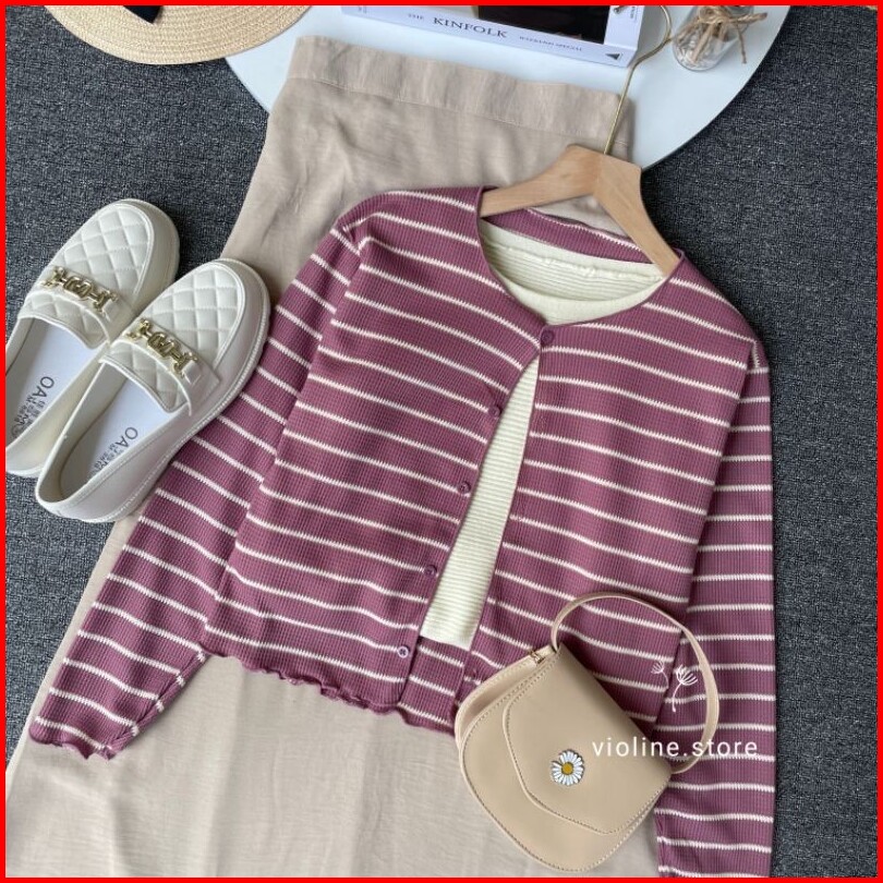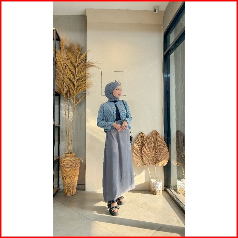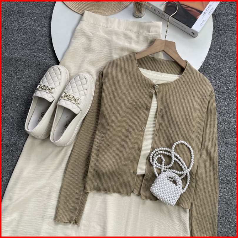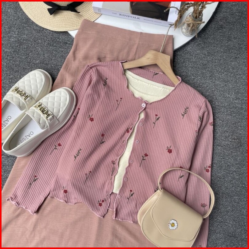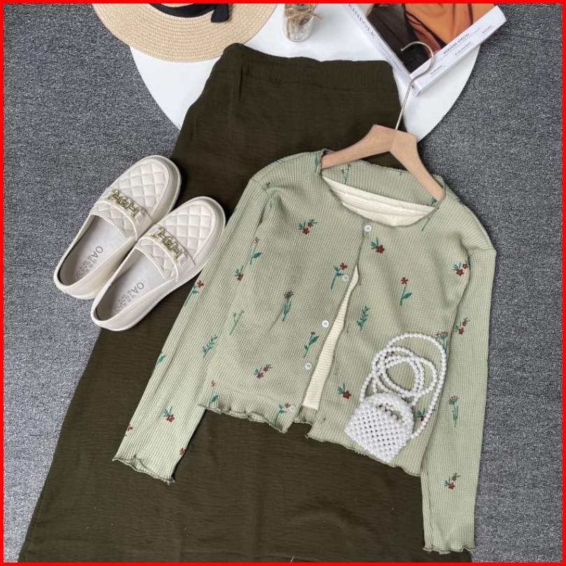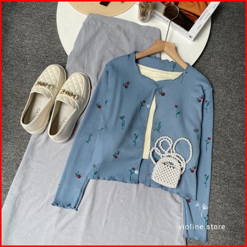 Violine Store - Oneset Setelan Wanita Remaja Kekinian Rok Panjang Atasan Cardi Bunga Rok Crinkle Polos Korean Style Terb