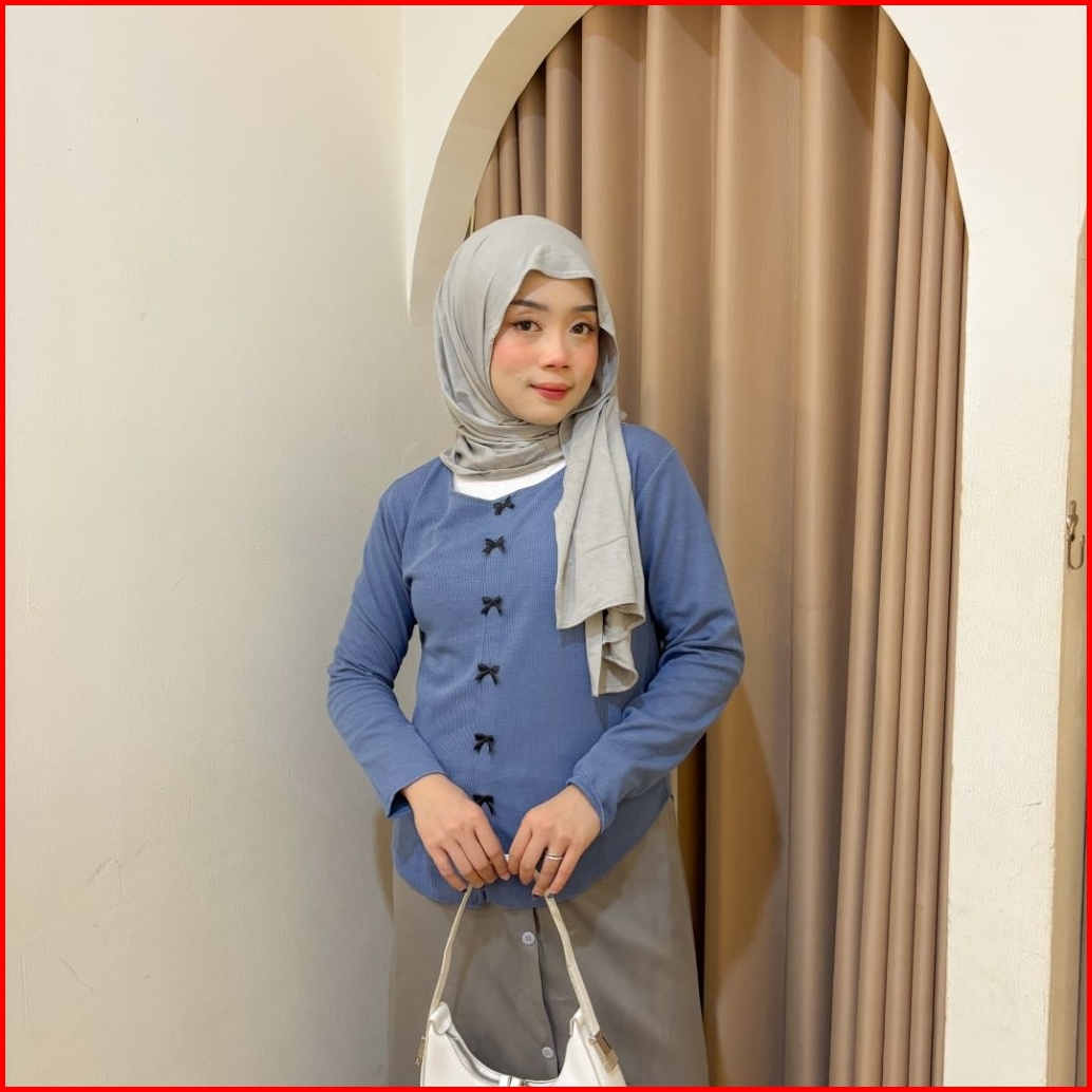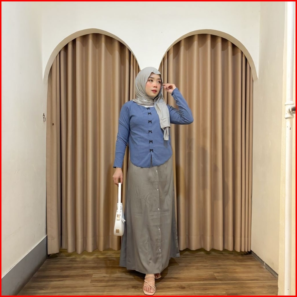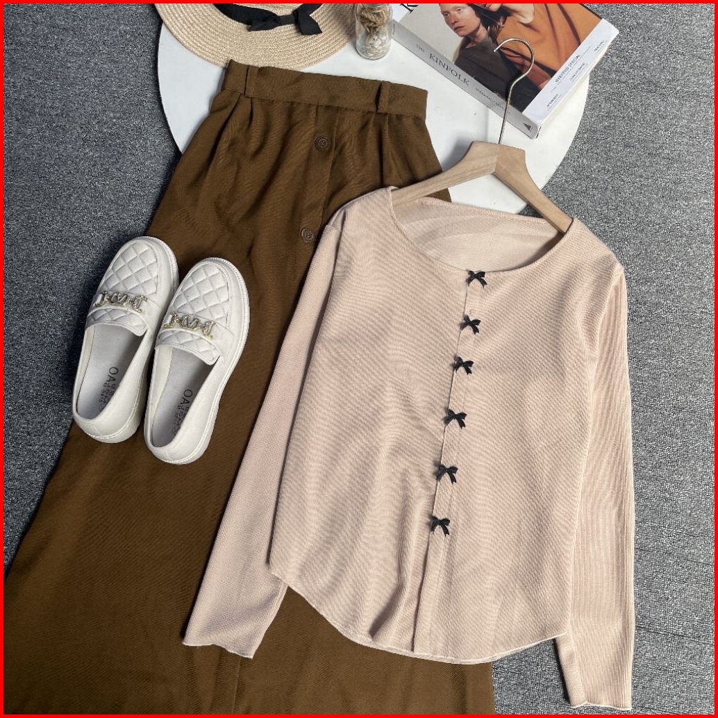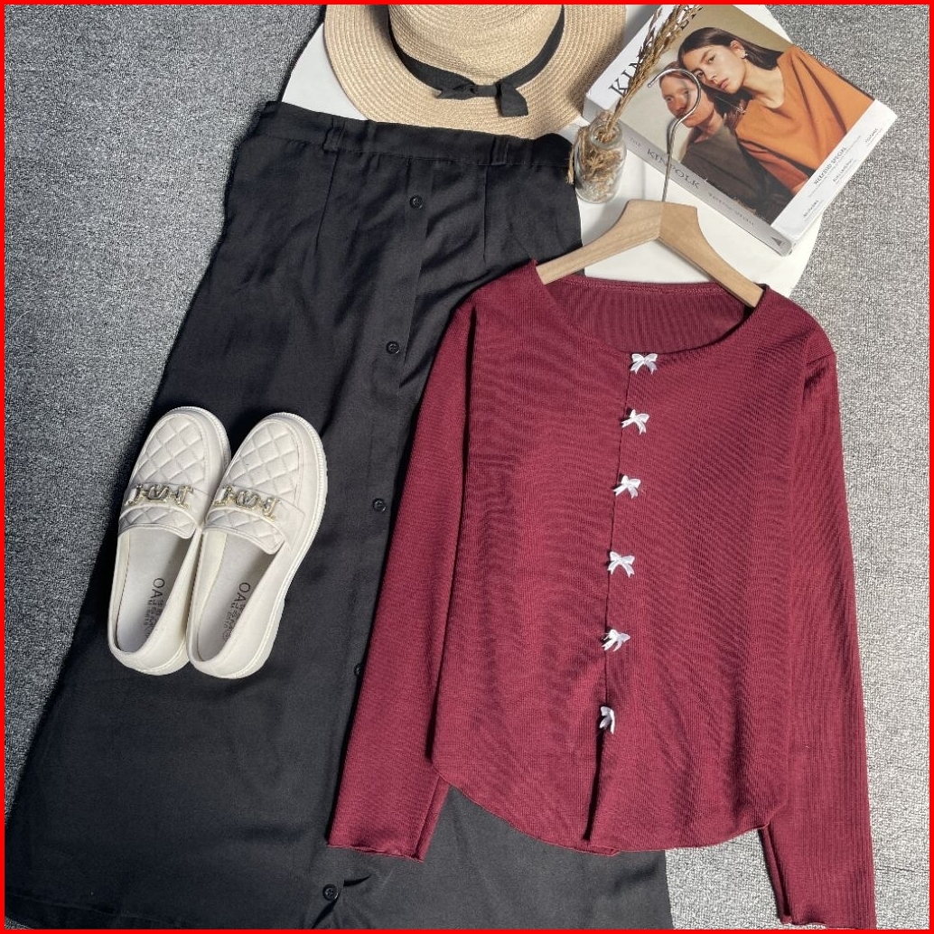 Violine Store - One Set Remaja Wanita Kekinian Korean Style Atasan Kaos Knit Coquette Bawahan Rok Kancing Polos Lucu Out