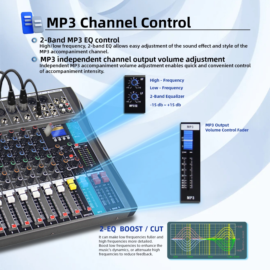 mixer Audio Professional CT 6/8/12 -Channel Mixer with DSP, USB, Bluetooth, and 12V Car Support