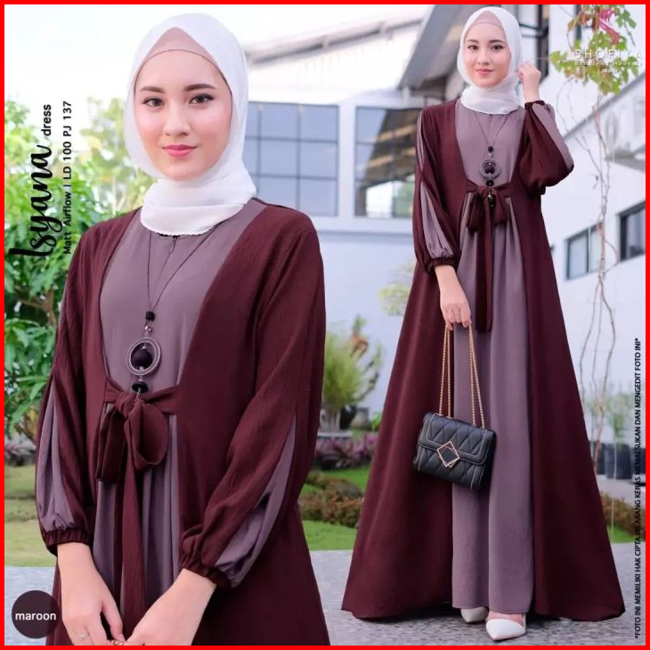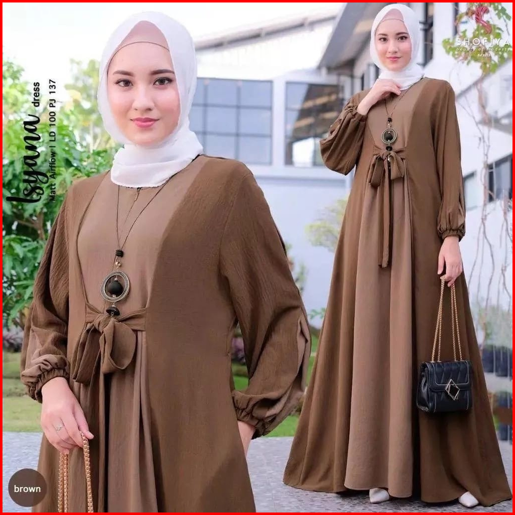 Shazfa.apparel Gamis Muslim Isyana Dress Bahan Rayon Linen Premium