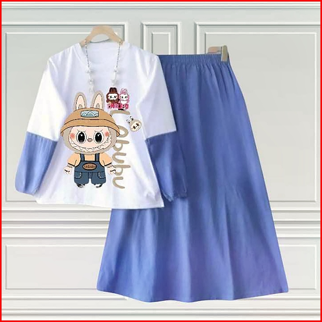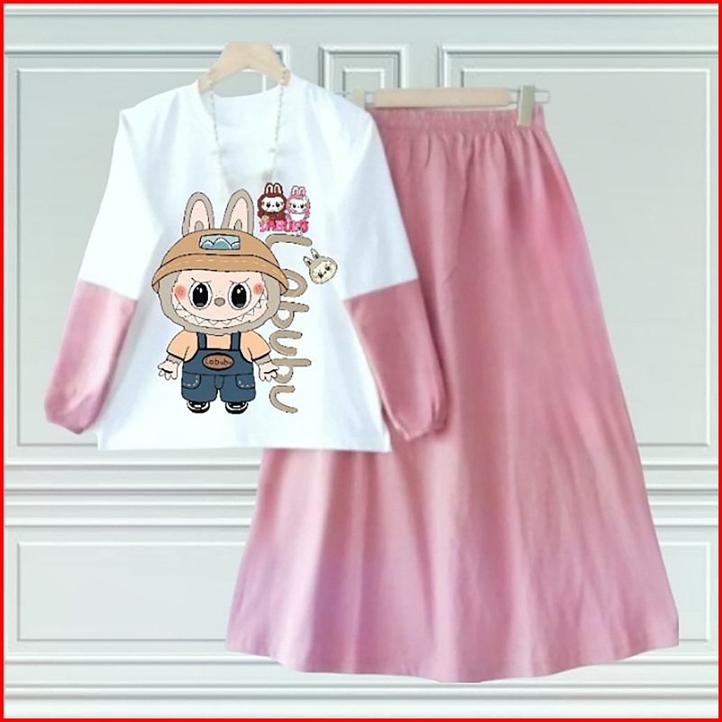 Hashiva Kids Labubu 003set Kids New Setelan Anak Perempuan Sablon Dtf Labubu