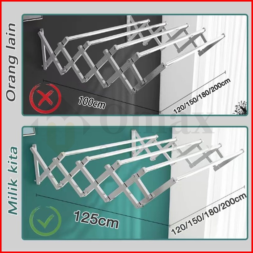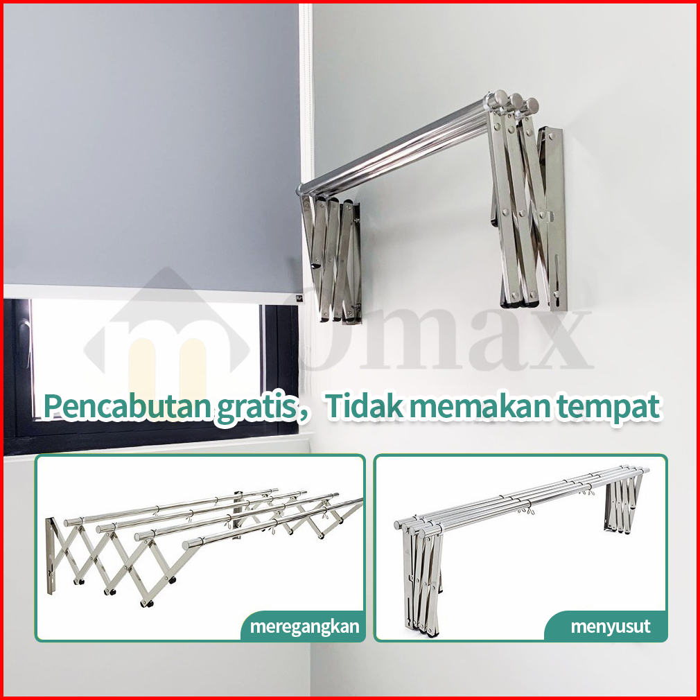 Ready Stockomax Jemuran Baju Pakaian Dinding 200cm 304 Stainless Jemuran Baju Dinding Lipat Tarik Baja Tahan Karat Rak J