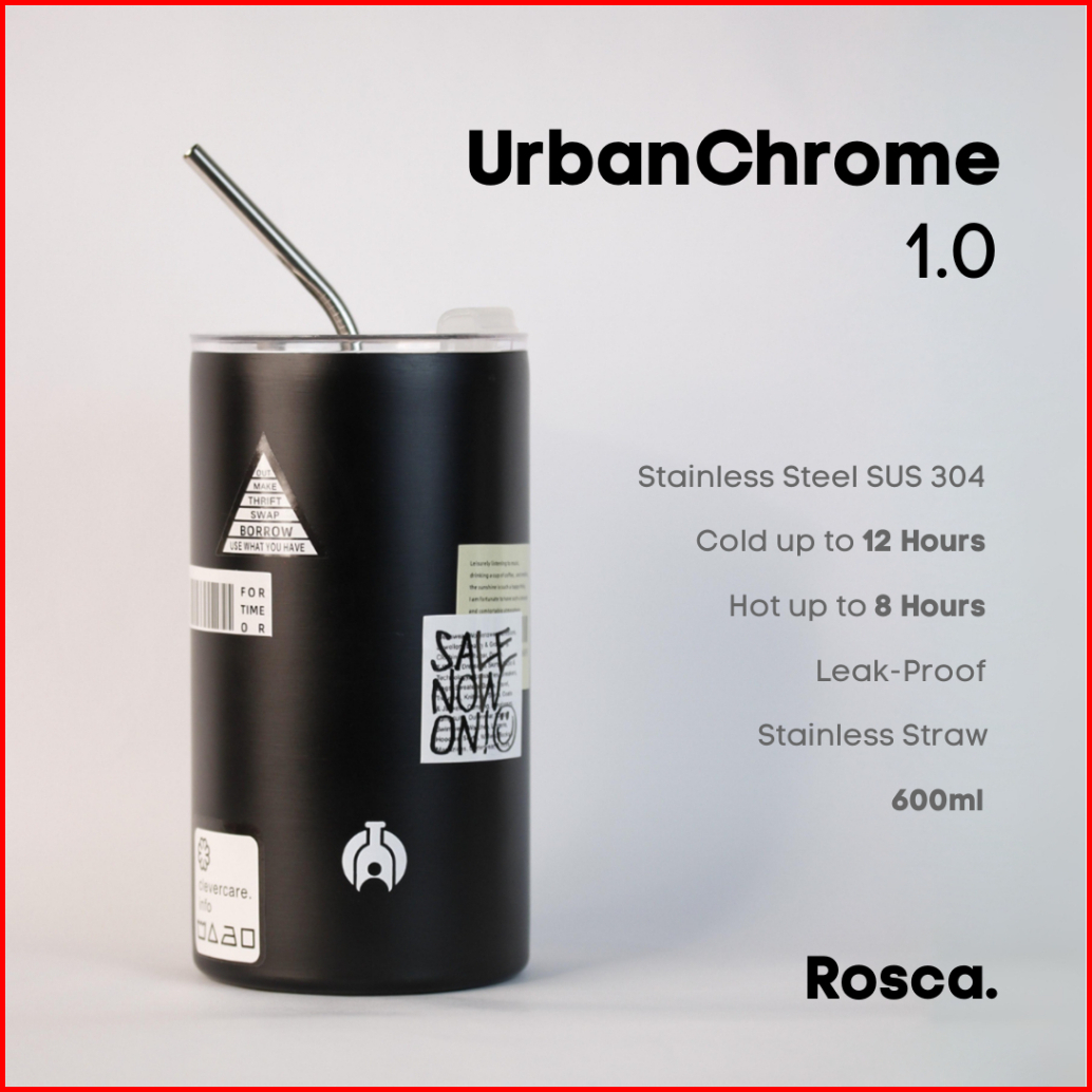Rosca Urbanchrome 1.0 Tumbler Stainless Botol Minum Aesthetic 600ml Dengan Sedotan
