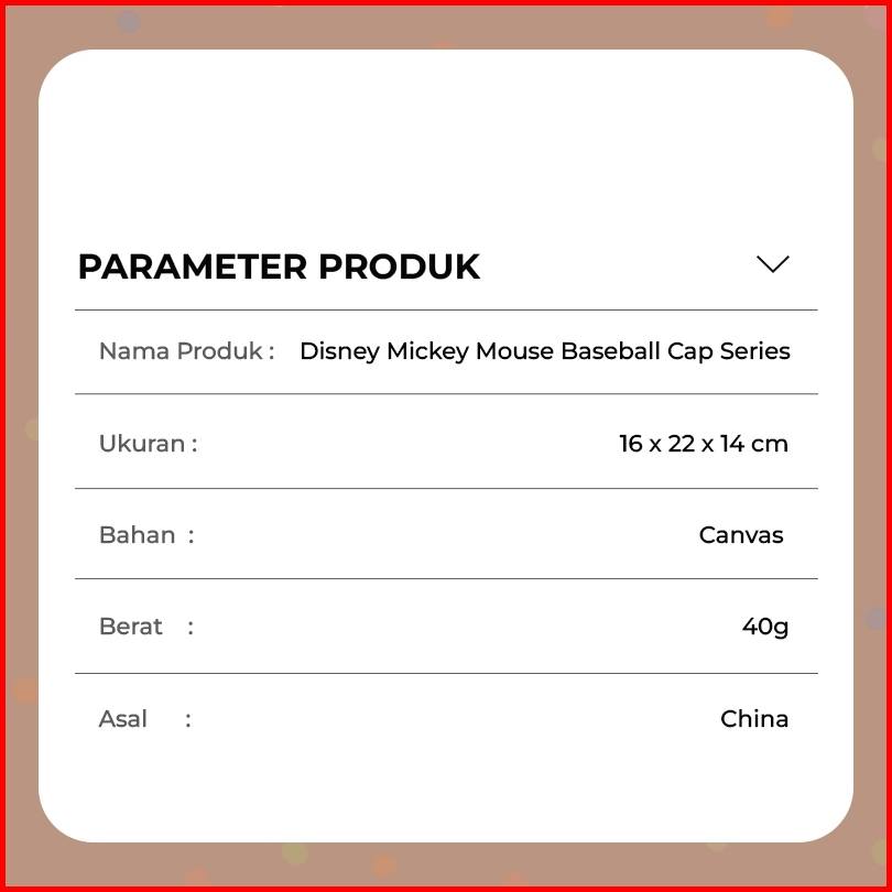 Ohsome X Disney- Mostorhata Baseball Cap Topi Bisbol Mickey Mouse