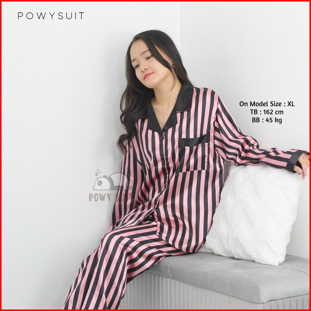 Yx56 Victoria Piyama Powysuit Baju Tidur Wanita Satin Lengan Panjang Celana Panjang Setelan Dewasa