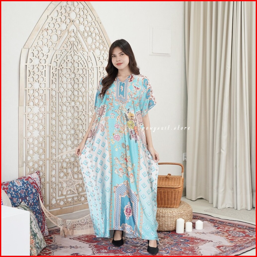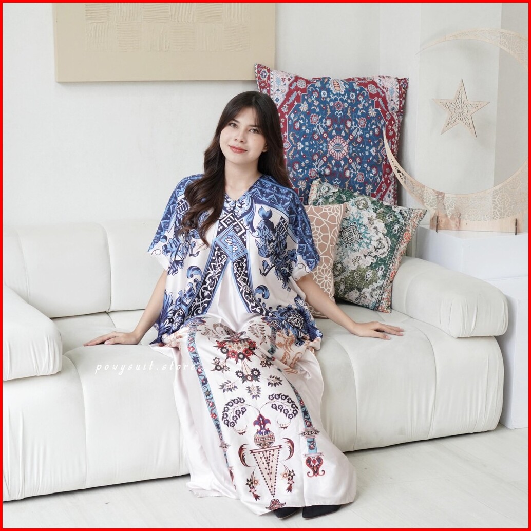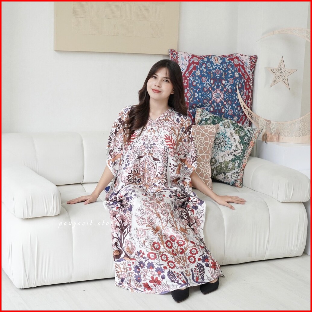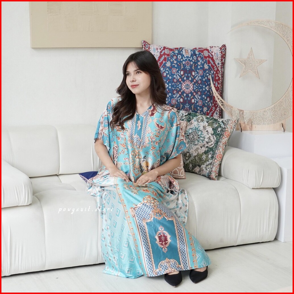Kaftan Powysuit Lebaran Muslim Wanita Motif Satin Silk Dress Jumbo 2025