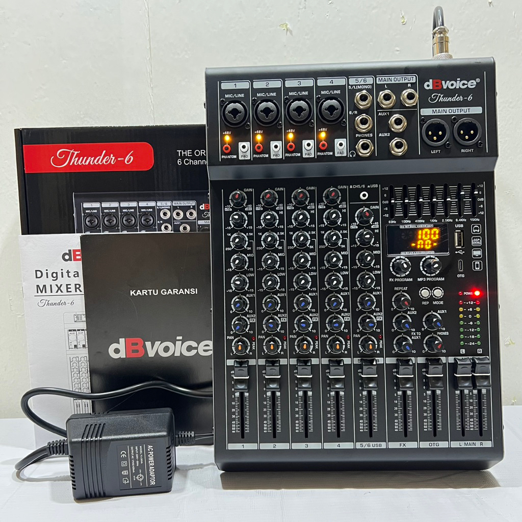 Mixer Dbvoice Thunder 6 Original 6 Channel USB Interface OTG With Soundcard