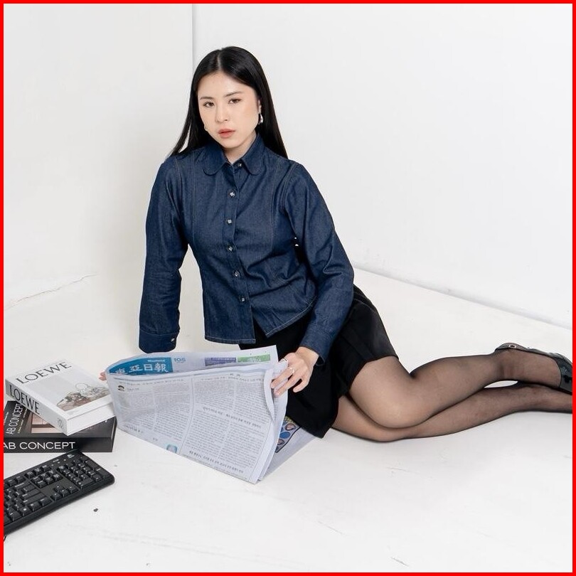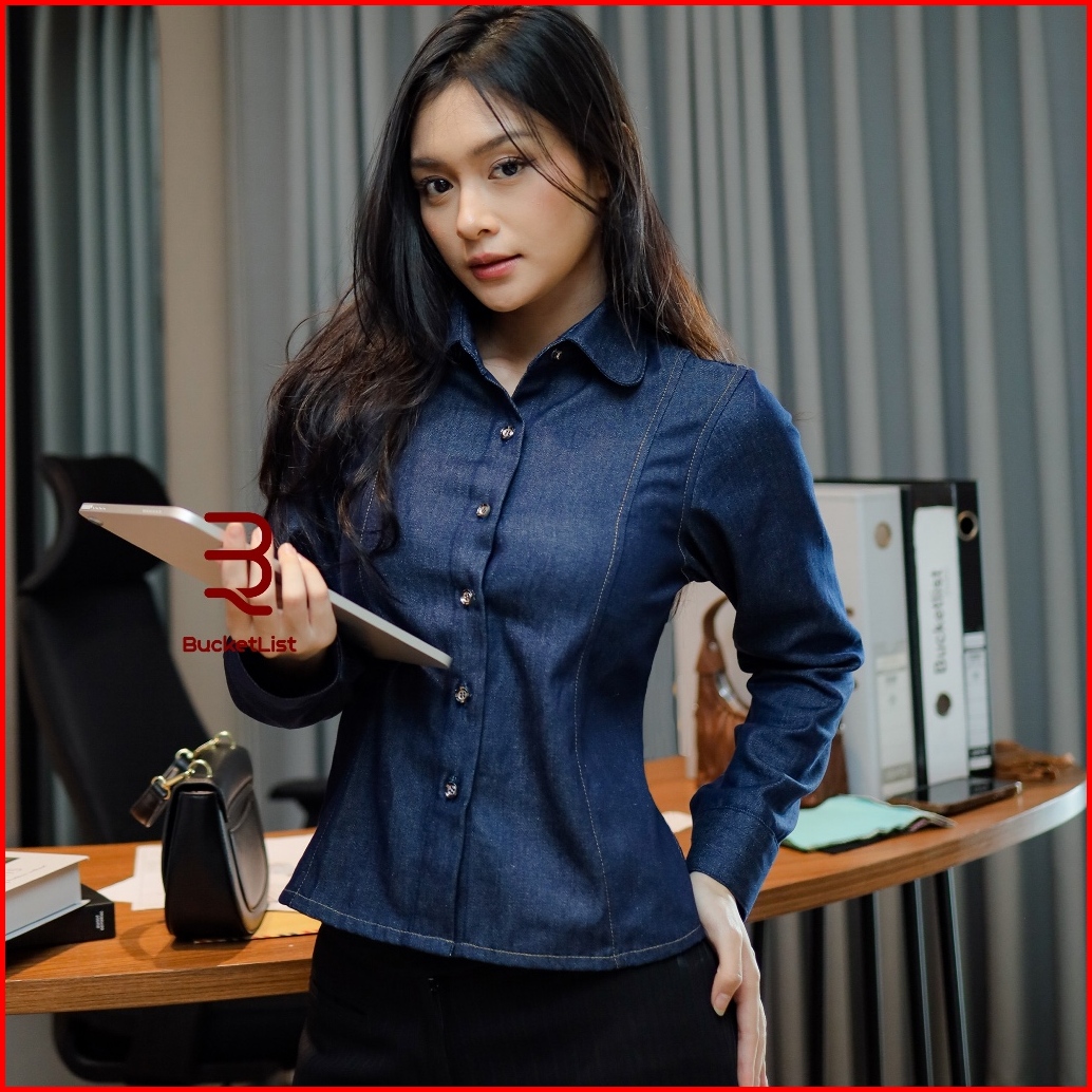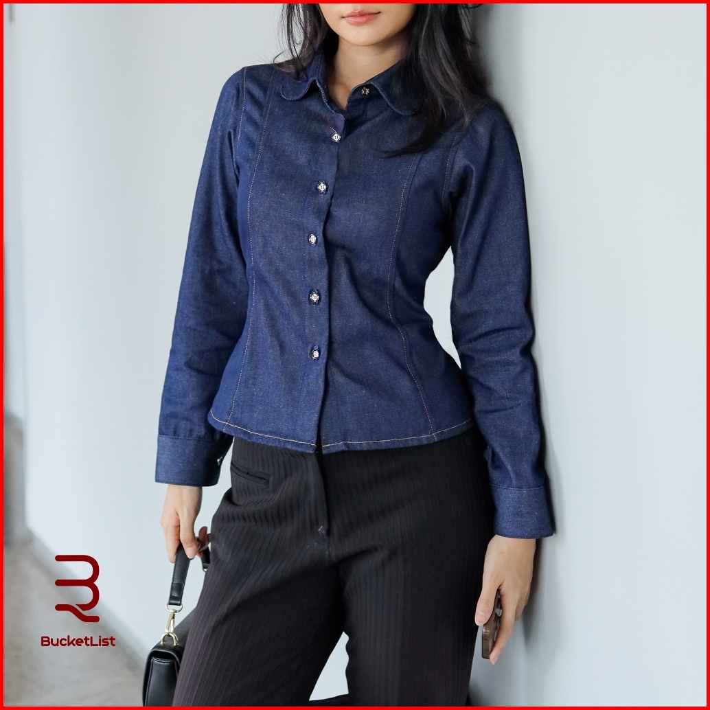 Yara Denim Fitted Jacket Shirt Denim Kemeja Kerja Wanita Casual