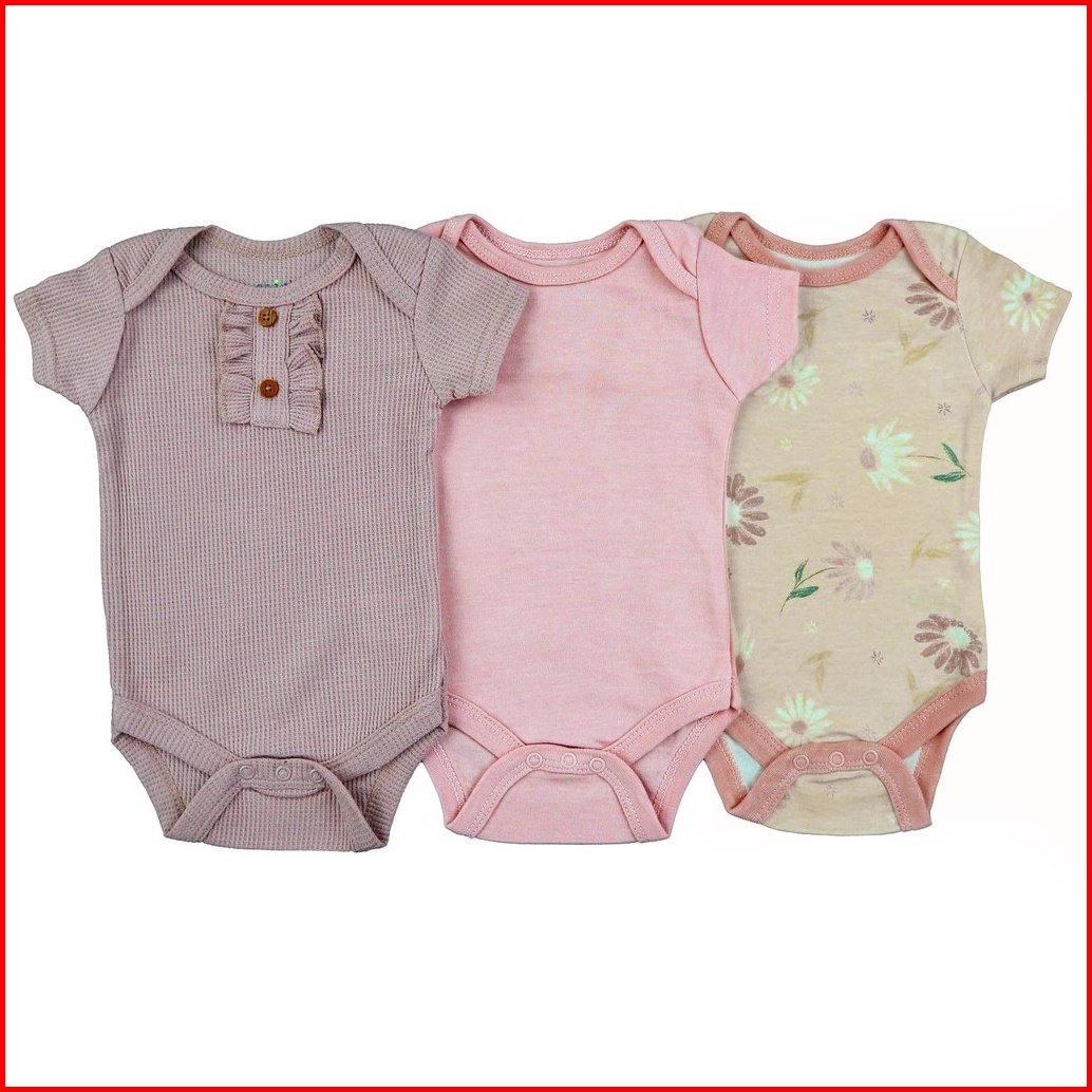 Littleolala - Bodysuit Bayi 3pcs 0-9bulan Jumper Pendek Newborn Baby Anak Murah Keren Jumper Bayi