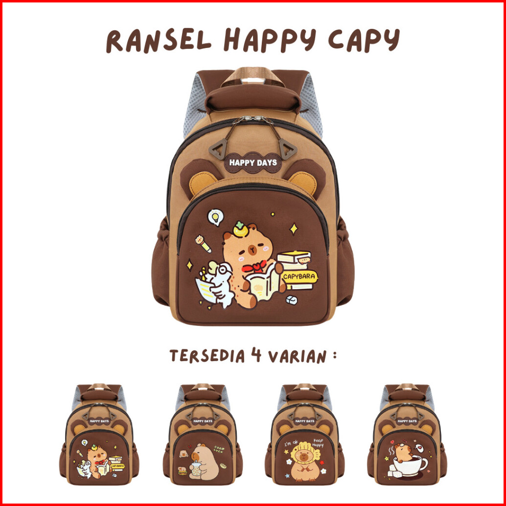 Littleolala - Tas Ransel Happy Capy Backpack Sekolah Anak Motif Capybara