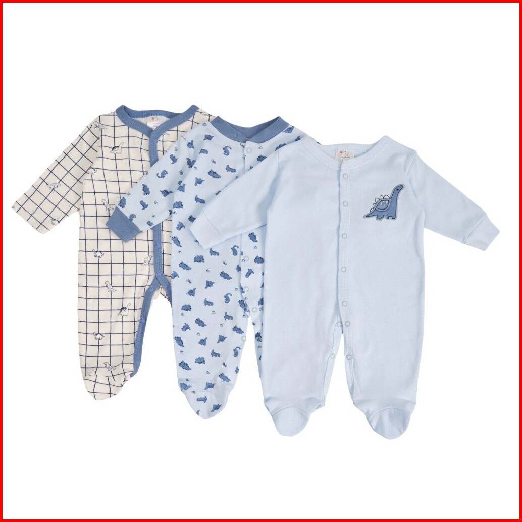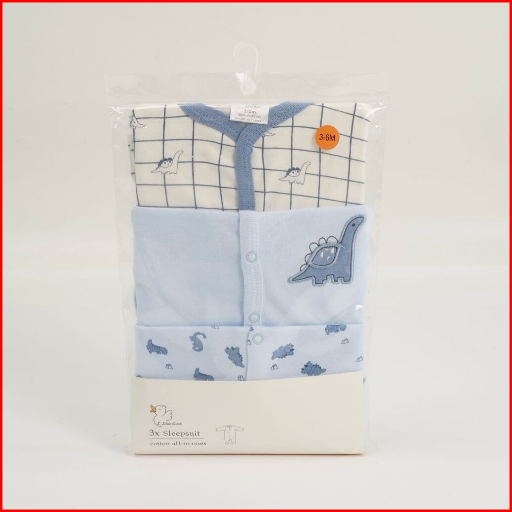 Littleolala - Baby Sleepsuit 3pcs Motif Blue Dino