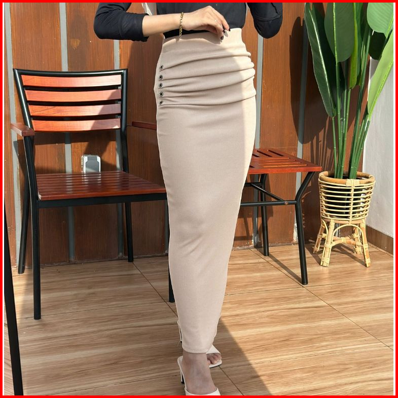Fay Long Skirt Rempel Rok Wanita Casual - Asymmetrical Skirt Twill Knit - Rok Span - Pleats Skirt Panjang Belah Samping