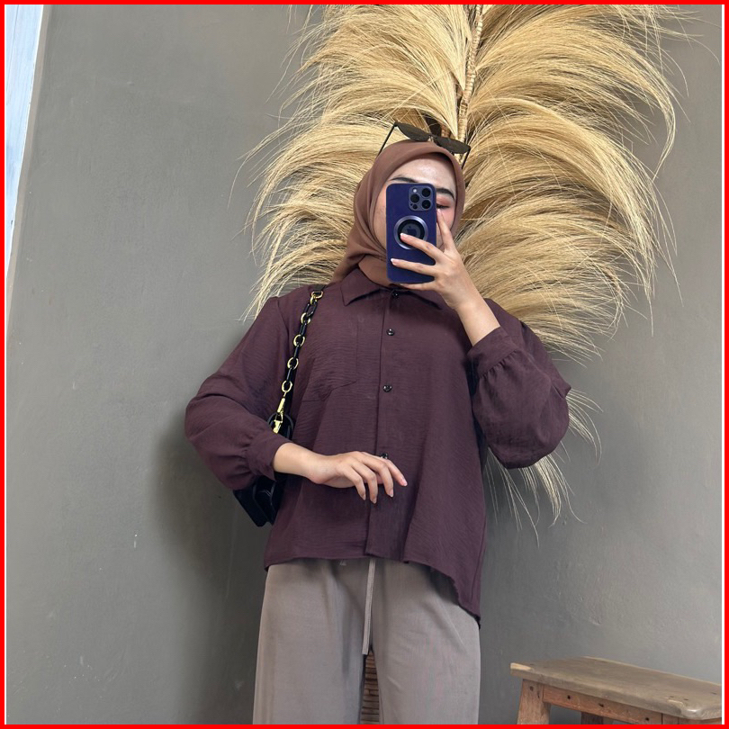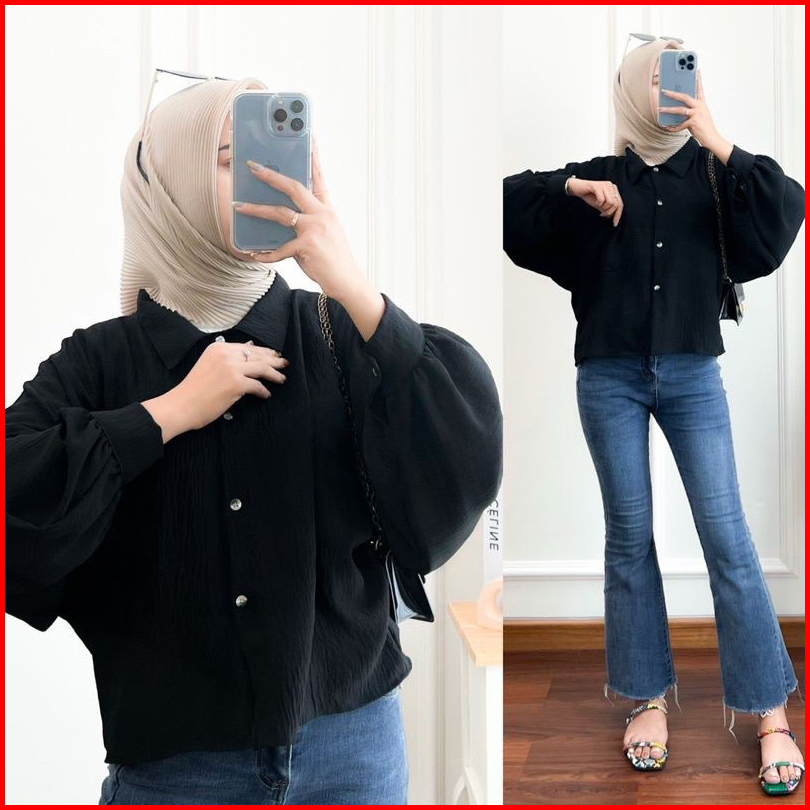 Malvin Crop Crinkle Airflow Kemeja Crop Wanita Atasan Wanita Crinkle