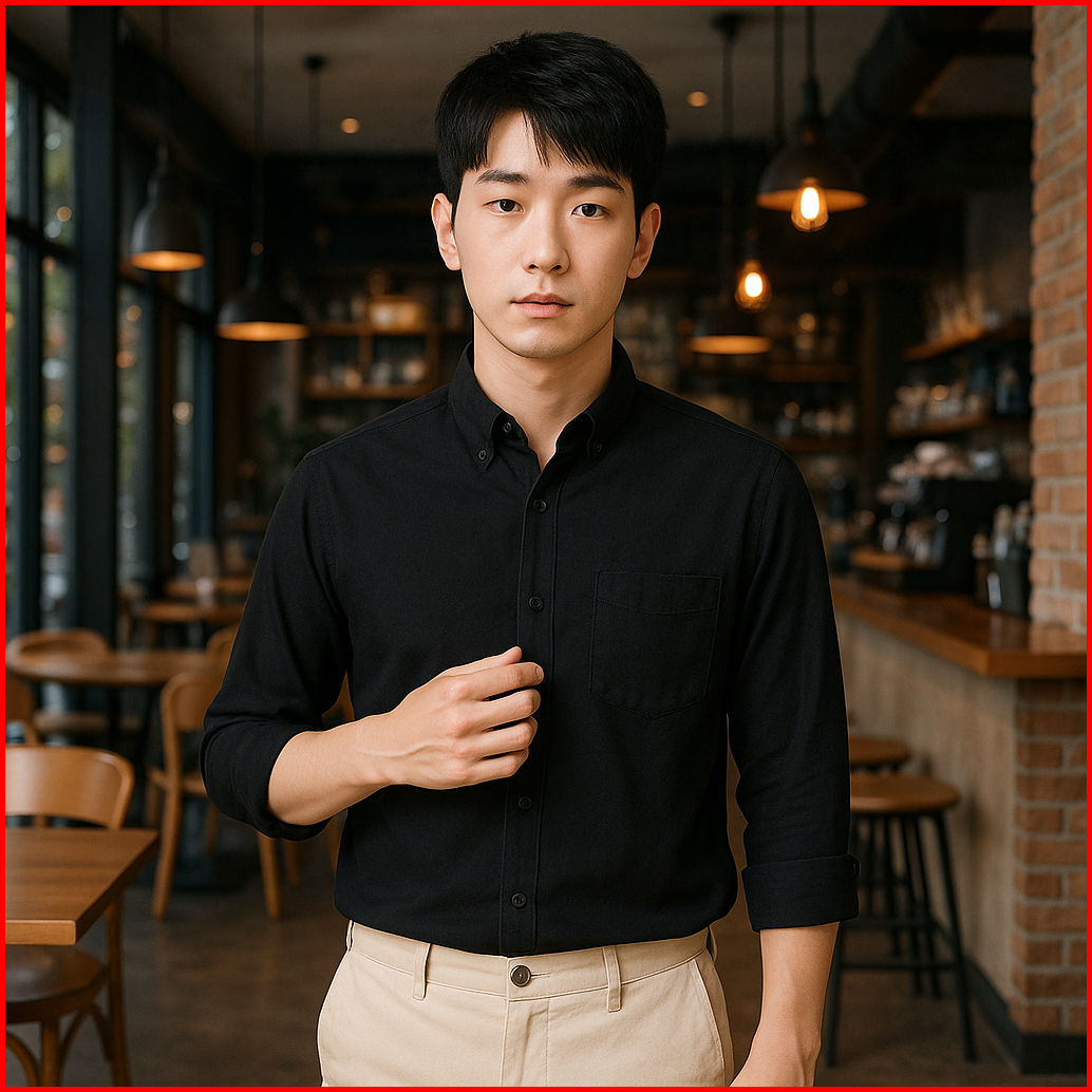 Vhatoga - Kemeja Pria Cotton Pique Long Sleeve Brown