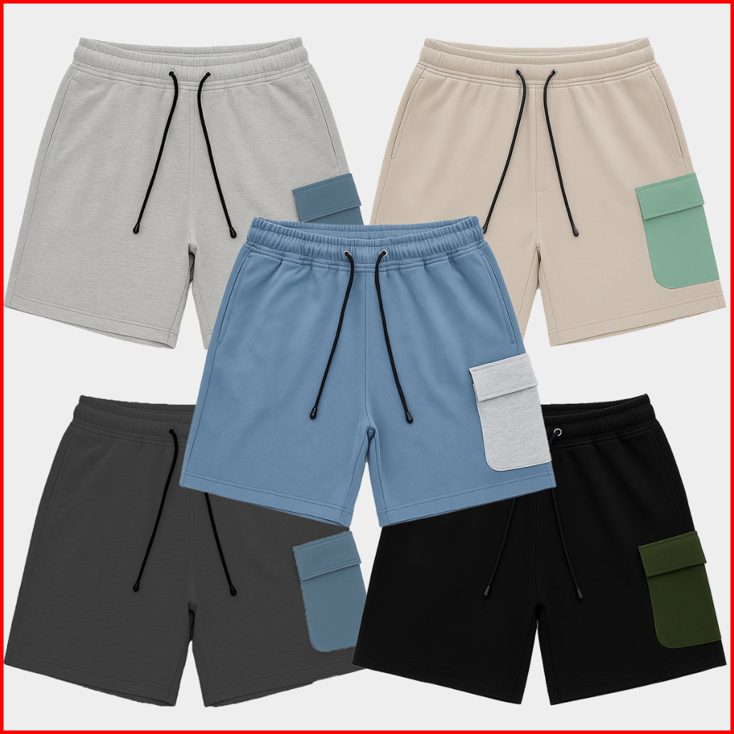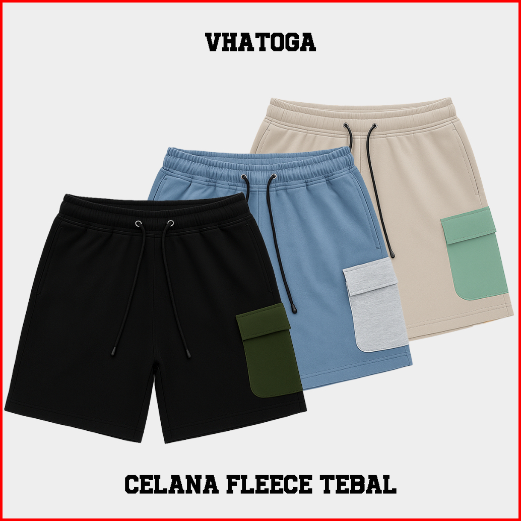 Vhatoga - Celana Boardshort Basic Polos Pendek Pria Wrinkled Polyester Fleece Tebal