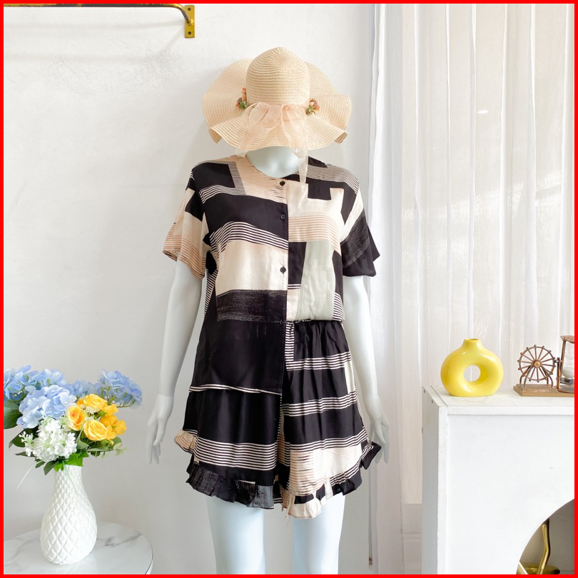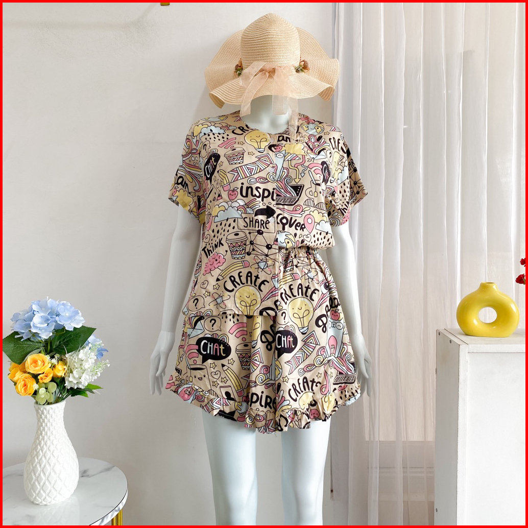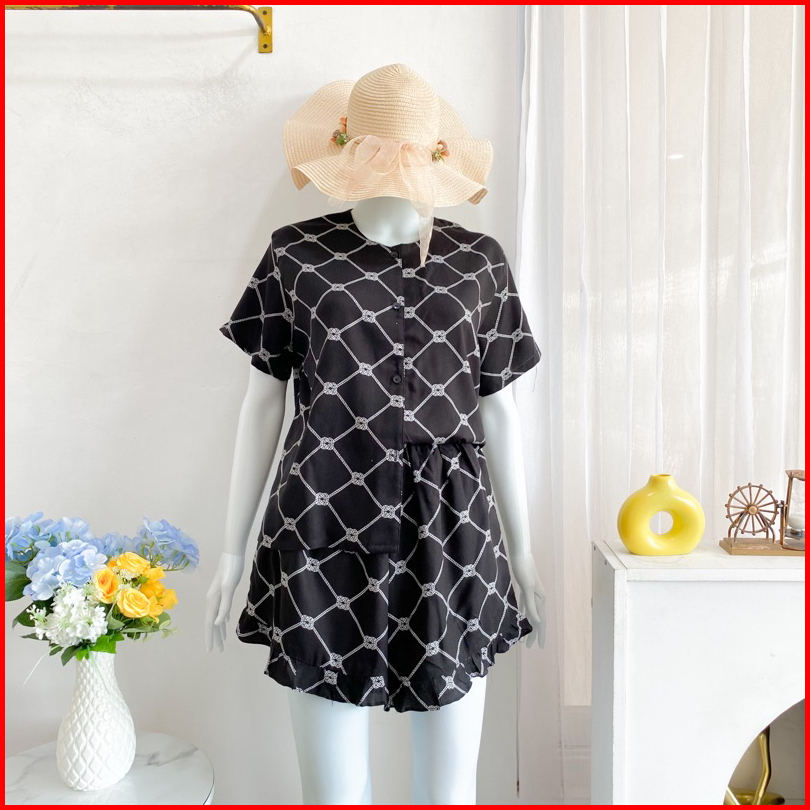 One Set Pendek Celana Ruffle Rayon Premium Anne Set