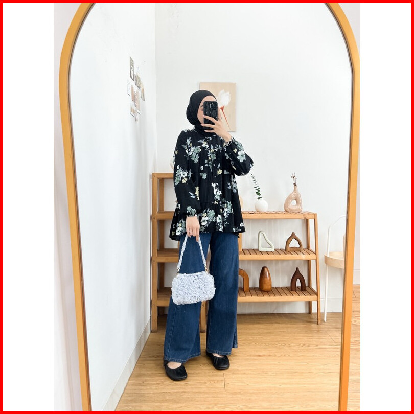 Pakaian Atasan Blouse Baby Doll Busui Friendly Model Rempel Susun Kemeja Motif Bahan Rayon Premium By Lemoa