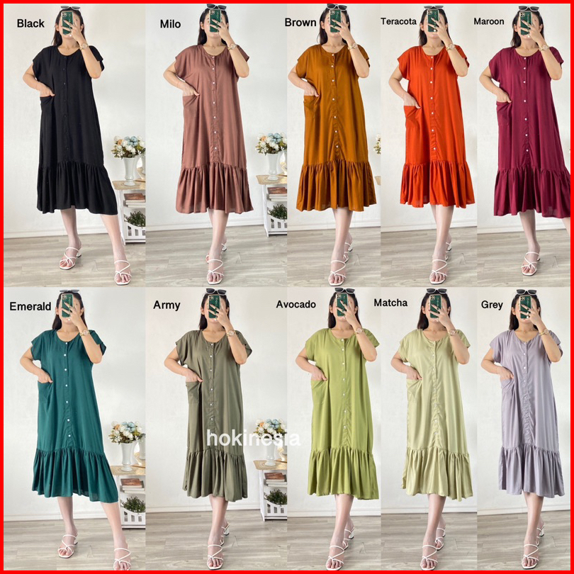 Daster Ruffle Vneck Kancing Daster Pendek Rayon Premium Daster Viera