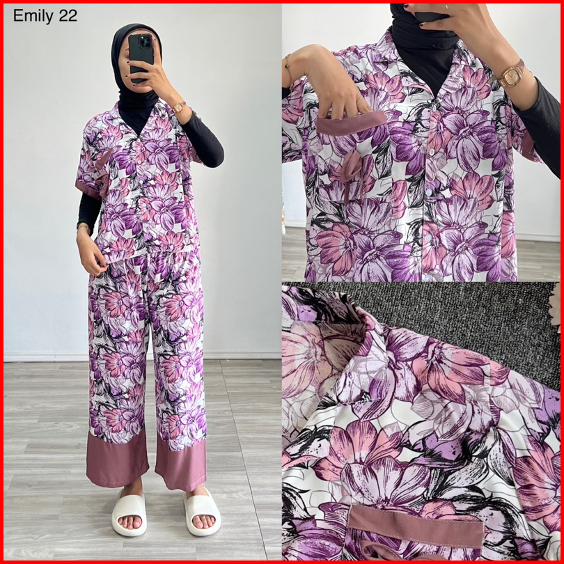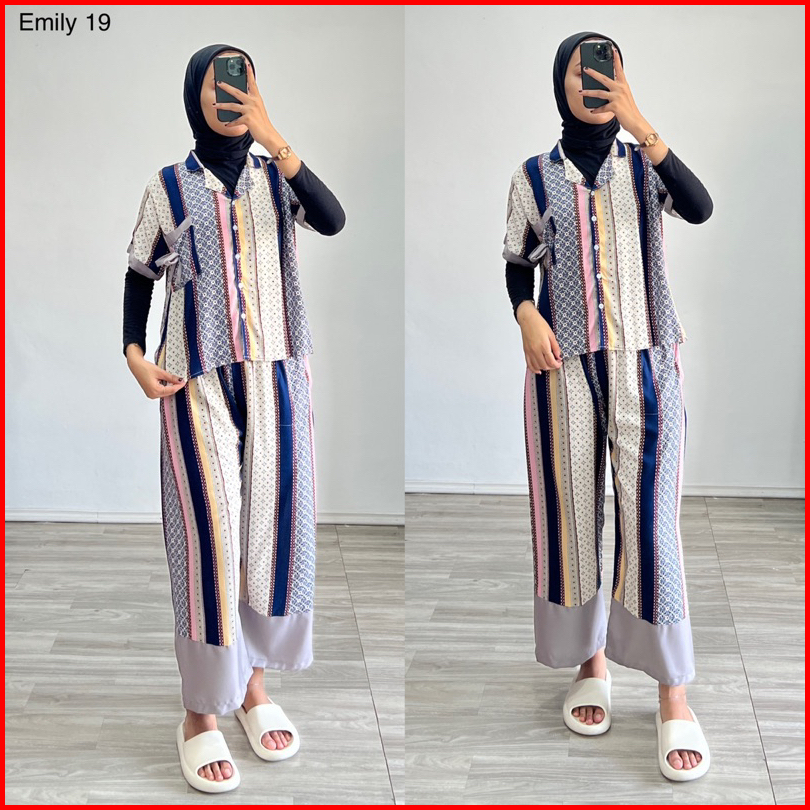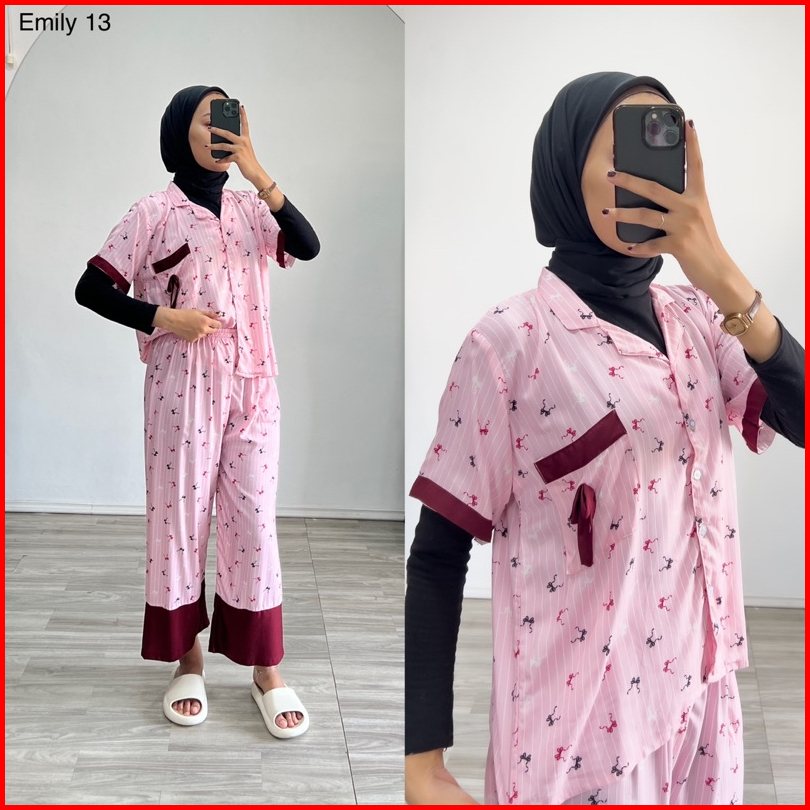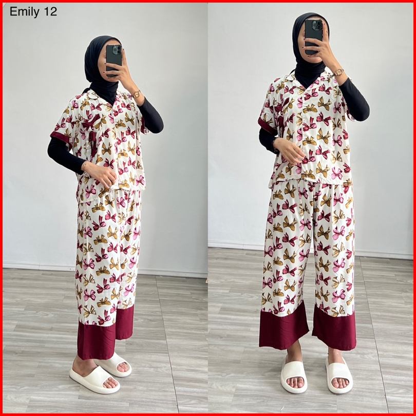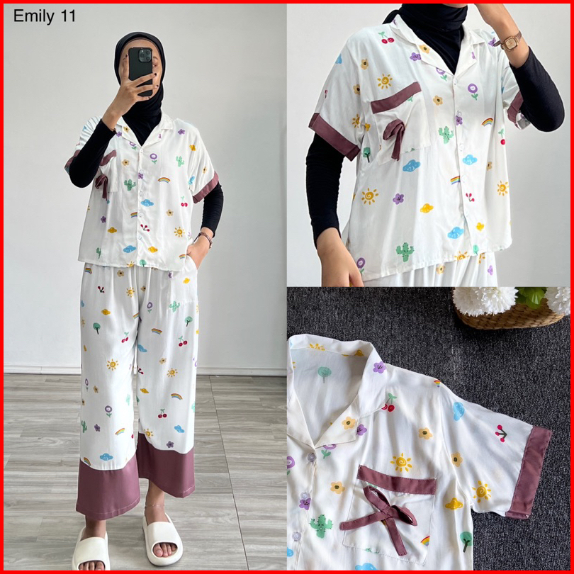 Piyama Emily Stelan Rayon One Set Ld Jumbo Celana Panjang