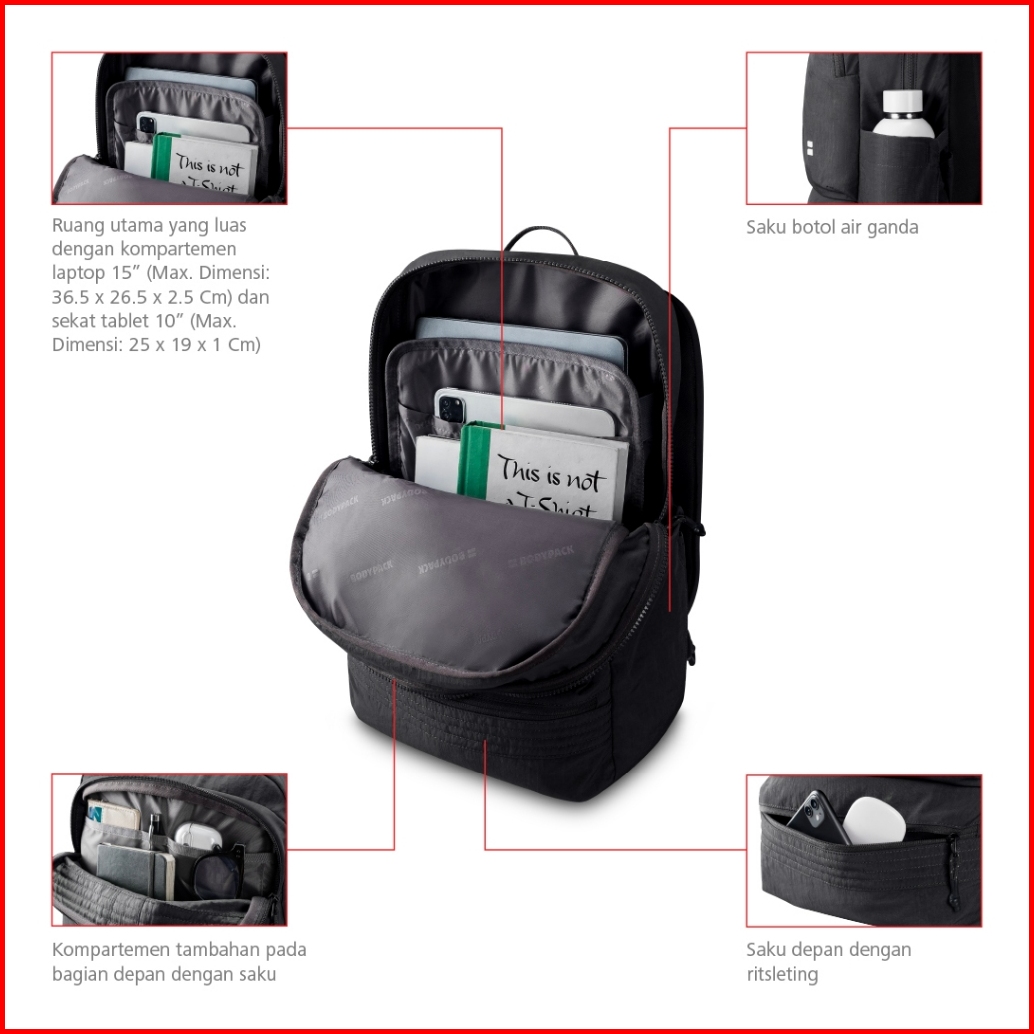 Bodypack Accerso Laptop Backpack 15 Inch Tas Ransel Kerja Kuliah Sekolah Ringan Multifungsi - Hitam