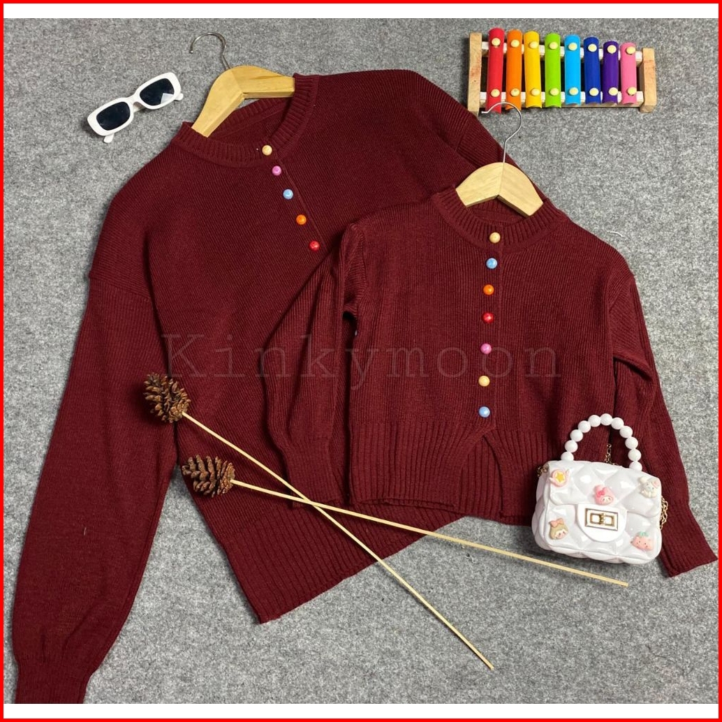 Melisa Cardigan Rajut Kancing Warna Warni Couple Ibu Dan Anak 1-10 Tahun Kardigan Wanita Atasan