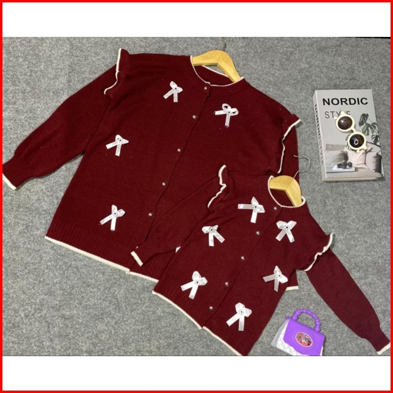 Poppy Cardigan Rajut 1-12 Tahun Pita Couple Ibu Anak Perempuan Outer Wanita Harga Terpisah