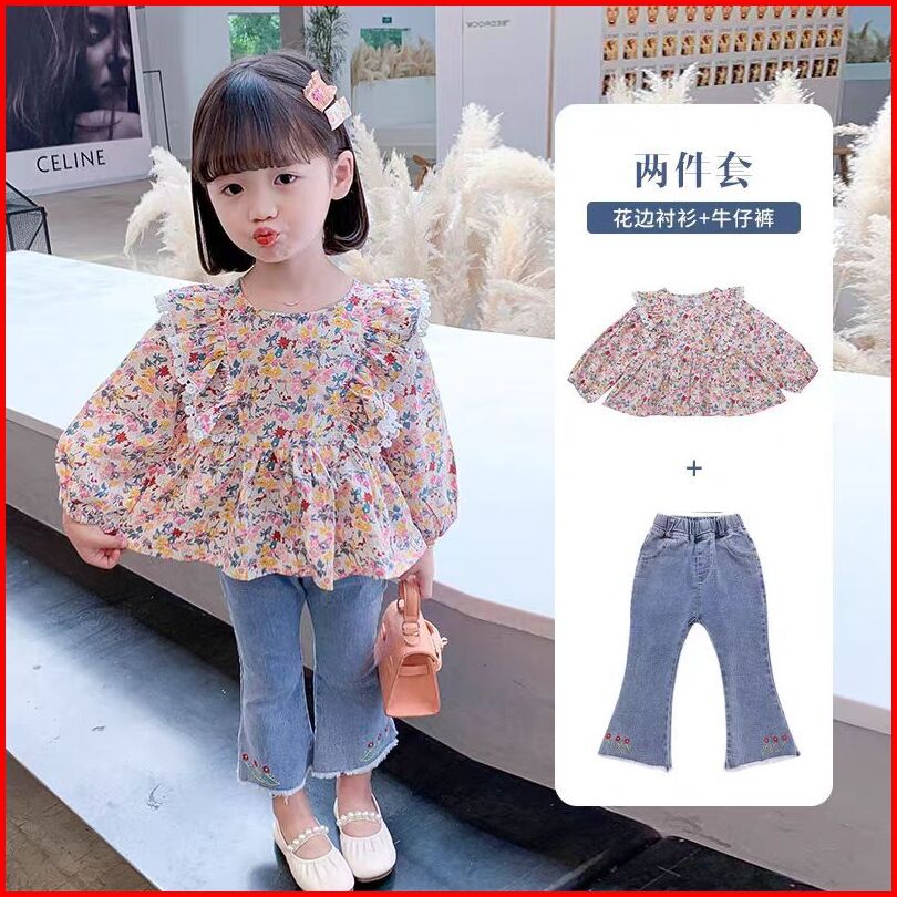 Setelan Baju Kemjia Anak Perempuan Usia1-5thn Baju Setelan Celana Jeans Panjang