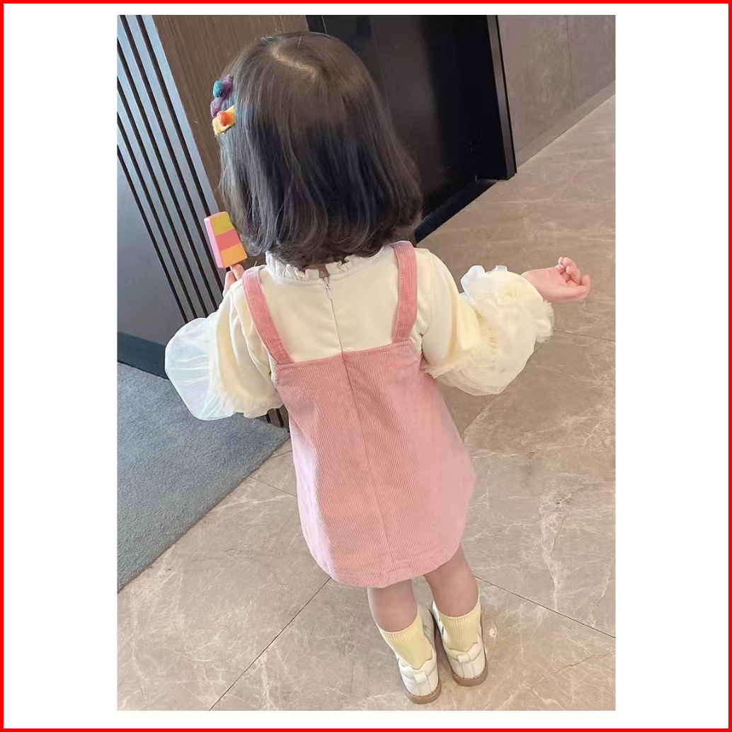 Dress Anak Perempuan Overall Gaun Anak Cewek Bahan Denim Katun 2in1 Mains Korea Style Usia 1-4thn