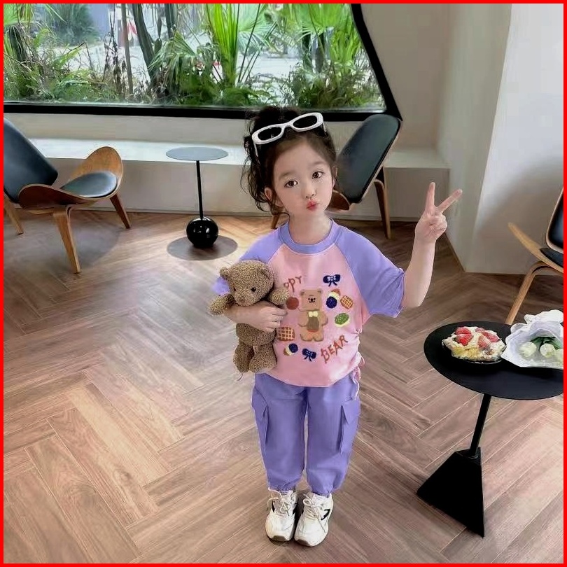 Setelan Cargo Anak Perempuan Usia 1-5th Setelan Kuromi Setelan Bear Import Premium Bahan Kaos Premium Super