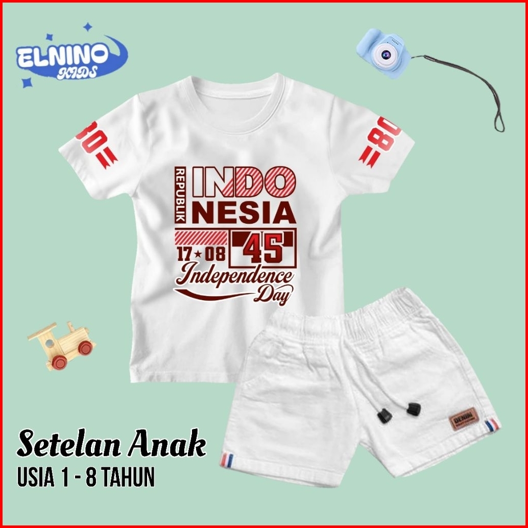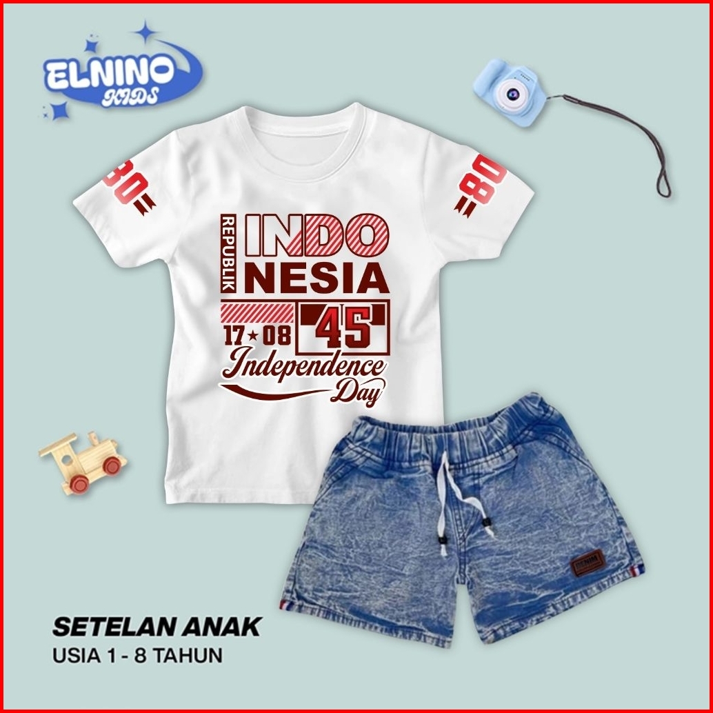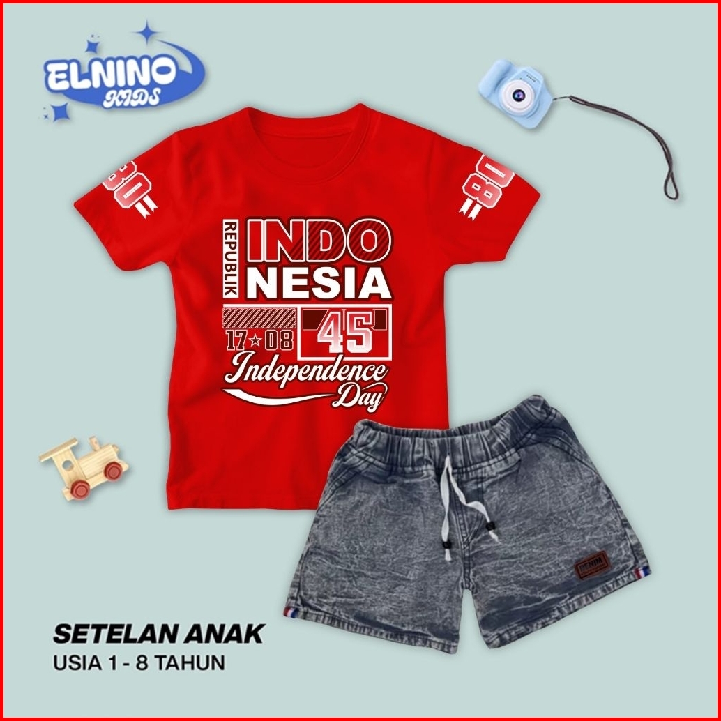 Setelan Jeans Anak Usia 1-8 Tahun Laki-laki Dan Perempuan Motif Kemerdekaan Series
