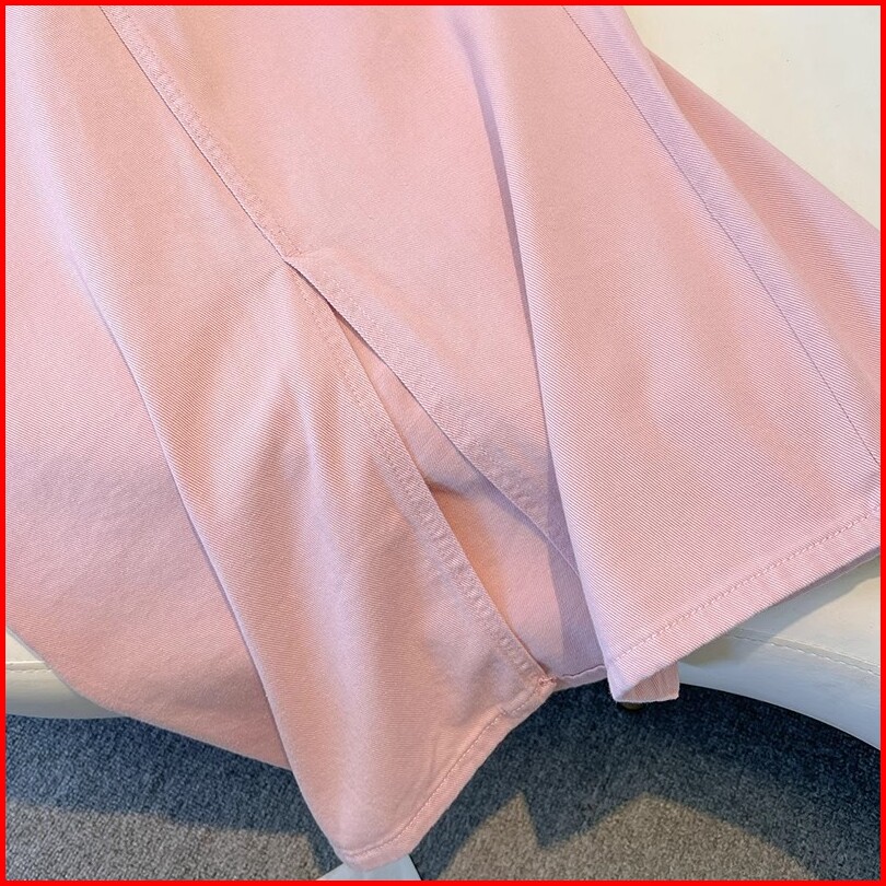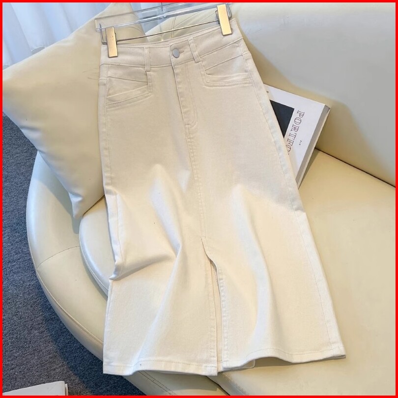 Elegan.girl Jeans Rok Wanita Pink Highwaist Rok Midi A-line Denim Split Pakaian Wanita Terbaru Rok Jeans Warna Gaya Kore