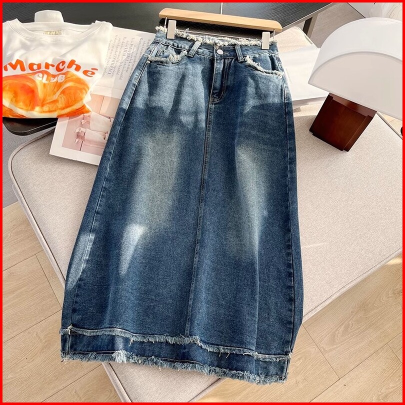 Elegan.girl Rok Korean Style Panjang Rok Denim A Line Denim Skirt Kekinian Jumbo Fashion Rok Premium 7 8 Cewek