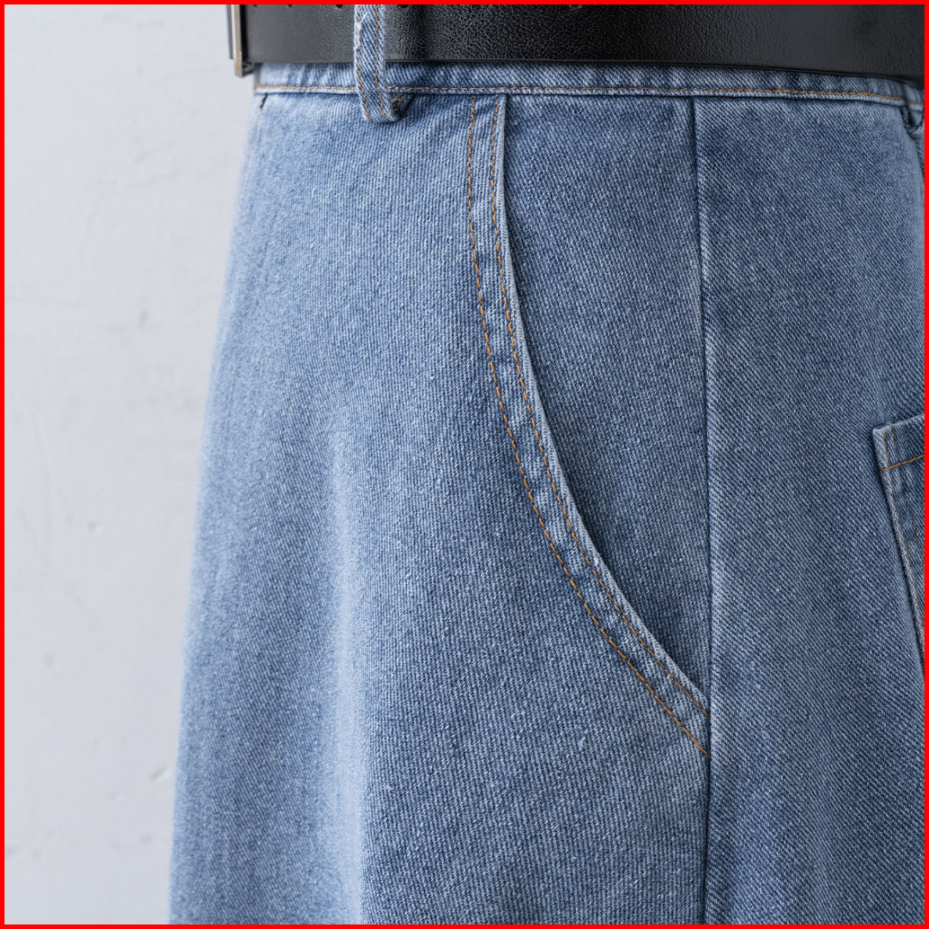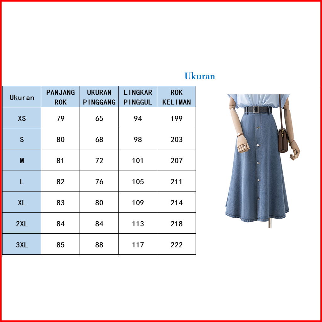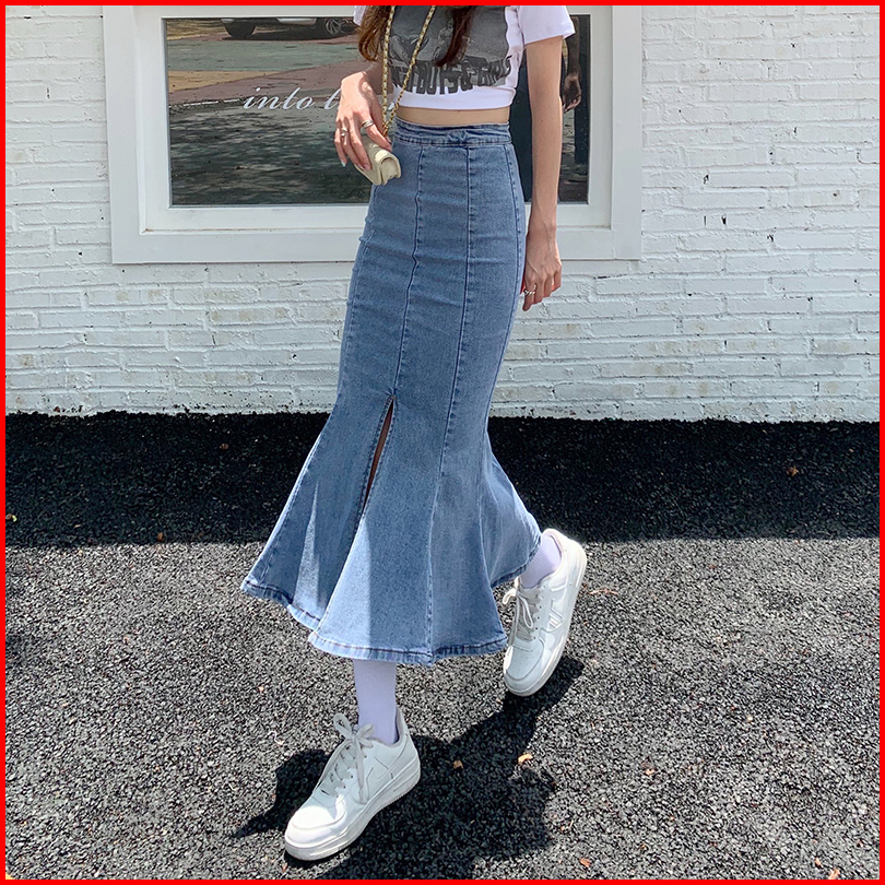 Elegan.girl Rok Korean Style Wanita Rok Denim Pinggang Tinggi Pelangsing Rok Denim Setengah Panjang A-lineskirt Musim Pa