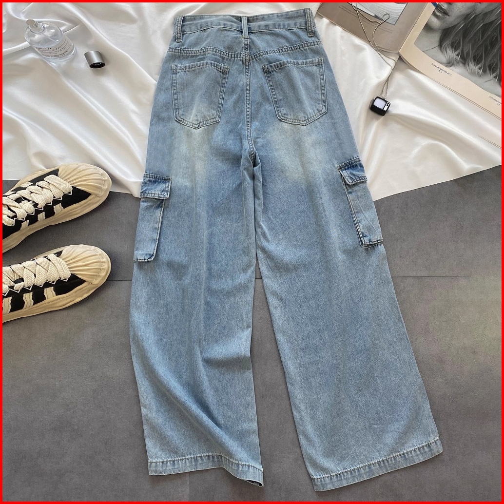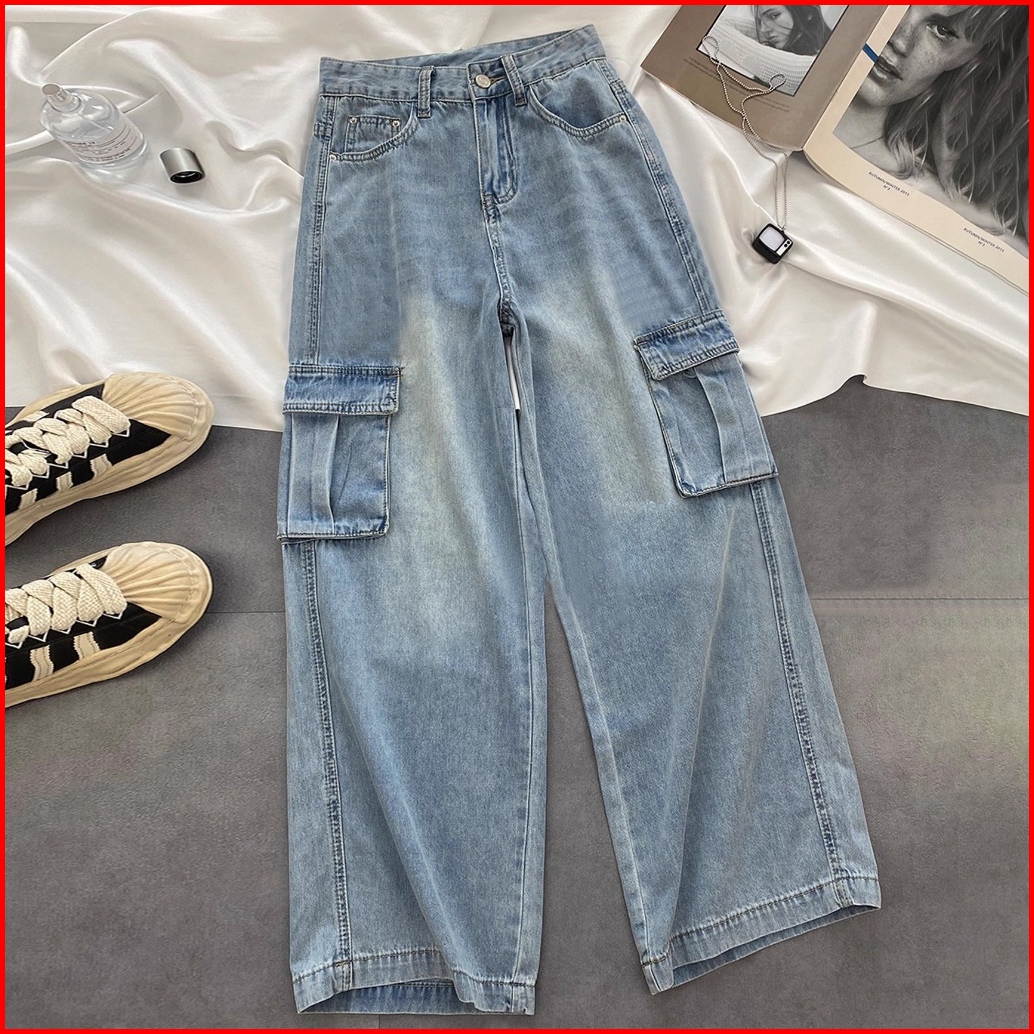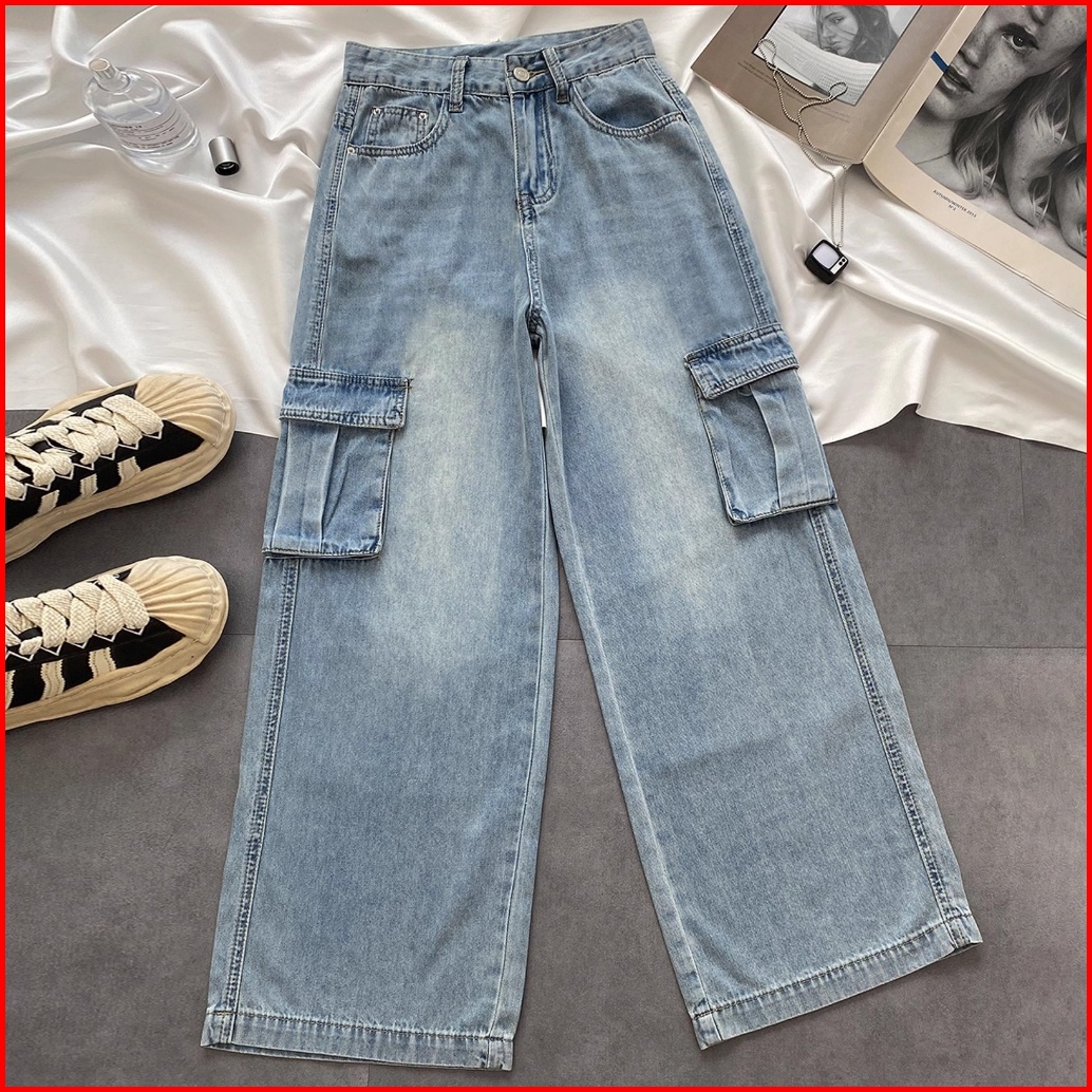 Elegan.girl Celana Cargo Panjang Jeans Korean Style Loose Celana Panjang Cargo Wanita Jeans