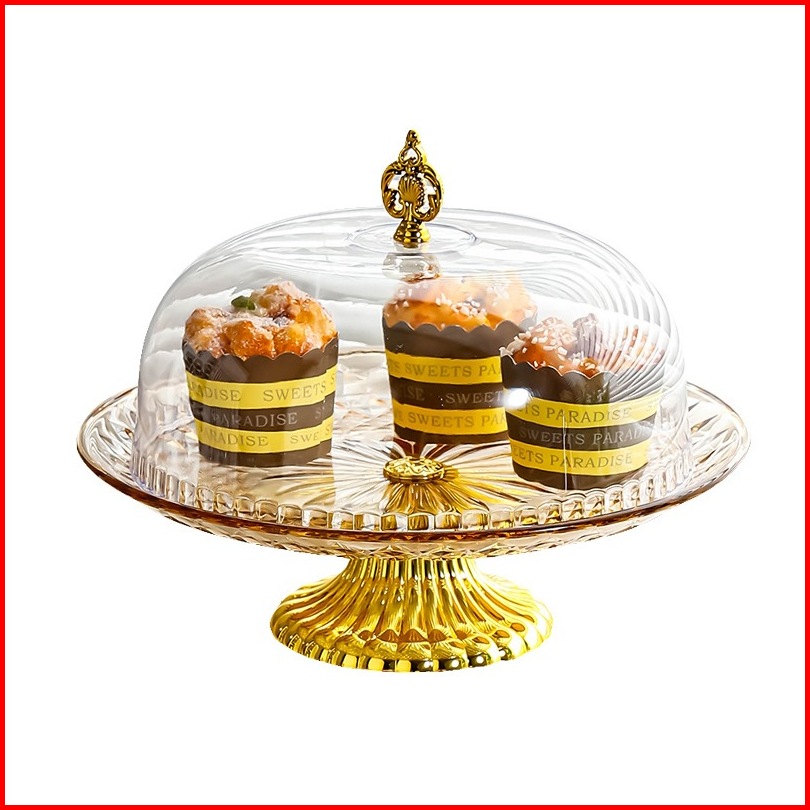 Tempat Kue Dengan Tutup Cantik Wadah Roti Aesthetic Baki Kue Tinggi Dengan Dudukan Layar Meja Dessert Tutup
