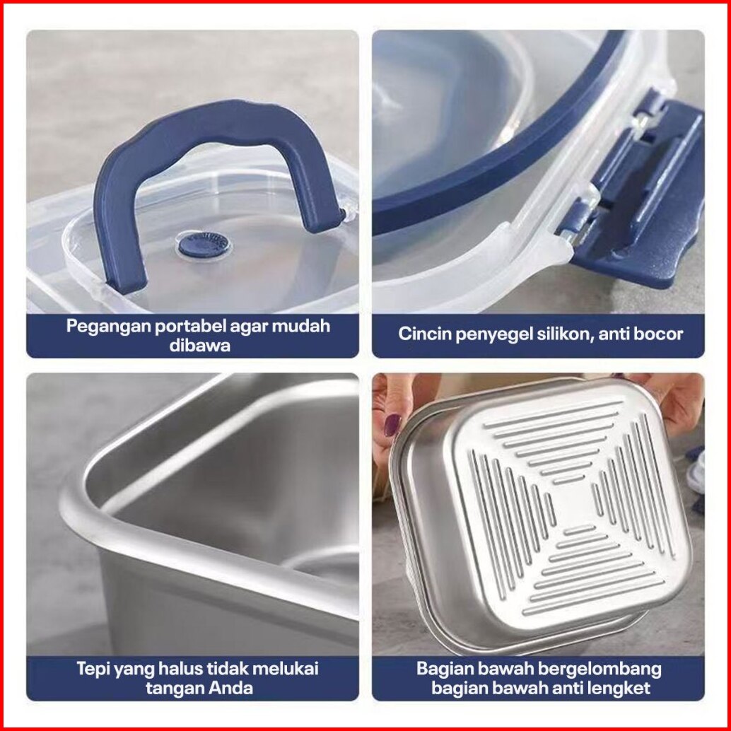 Codhomelix Food Container Stainless Steel 304 Anti Bocor - Wadah Makanan Portable Untuk Sekolah Kantor Picnic Bisa Micro