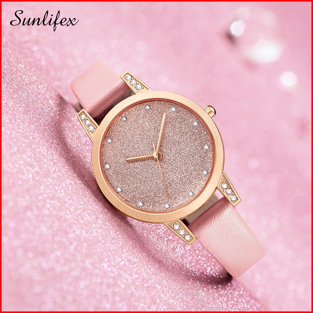 Sunlifex Jam Tangan Wanita Original Korea Mode Tali Kulit Jam Tangan Cewek Sl3341