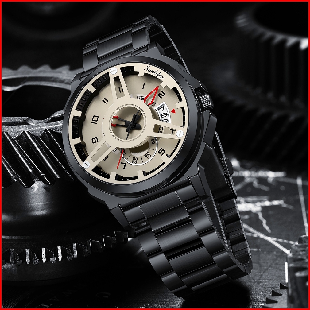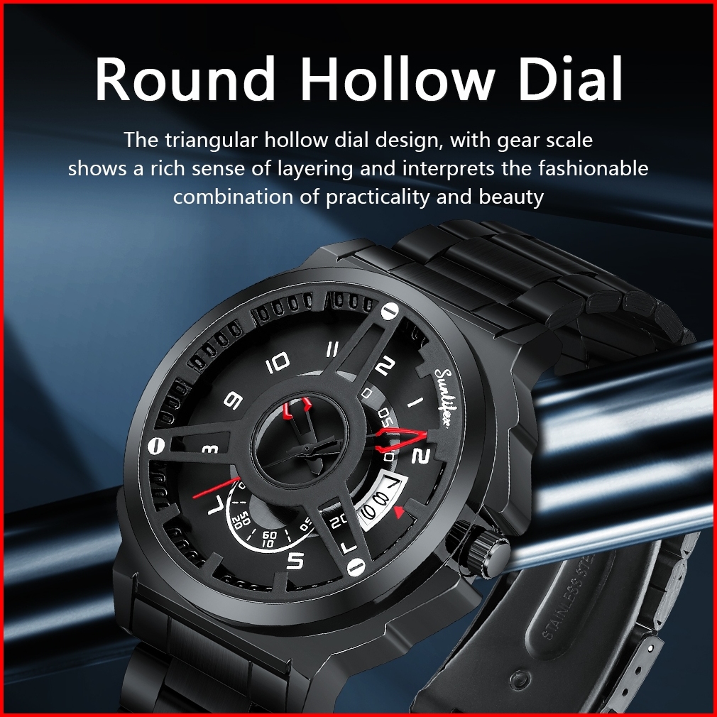 Sunlifex Jam Tangan Pria 9111 Hollow Dial Kuarsa Mode Tanggal Cool Jam Tangan Cowok Original