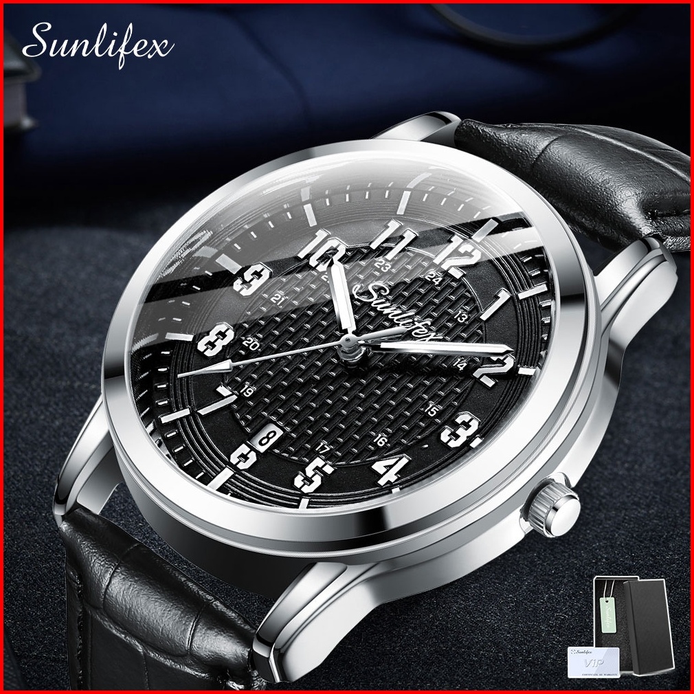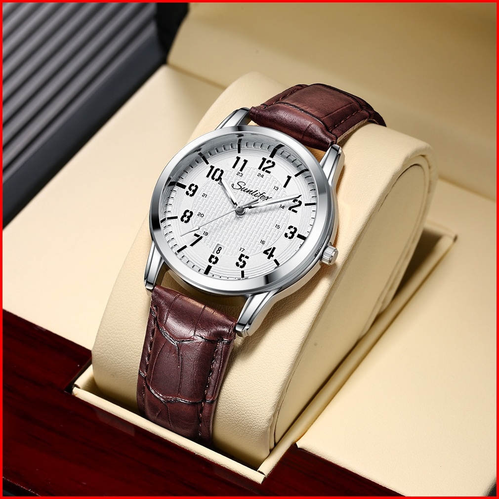 Sunlifex Jam Tangan Pria Kuarsa Klasik Santai Anti Air Calendar Tali Kulit Jam Tangan Cowok
