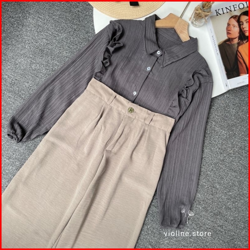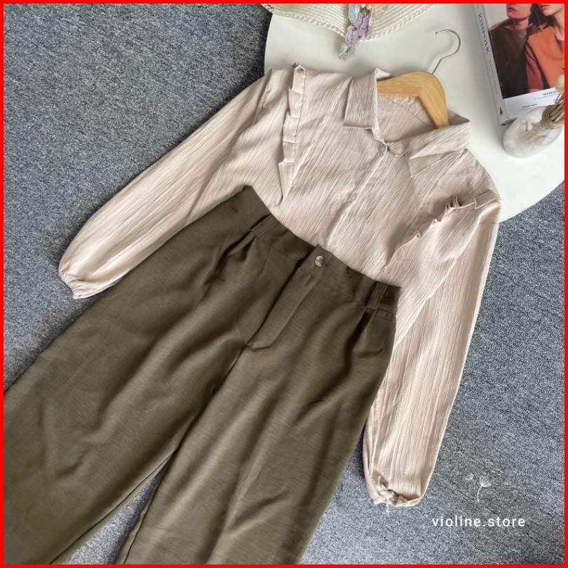 Violine Store - Oneset Wanita Kekinian Kemeja Ladycrush Celana Crinkle Kerja Kuliah
