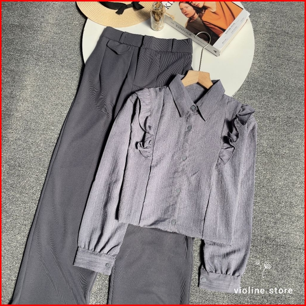 Violine Store - Oneset Setelan Wanita Remaja Setelan Celana Panjang Kekinian Atasan Ladycrush Bawahan Kulot Pocket Knit