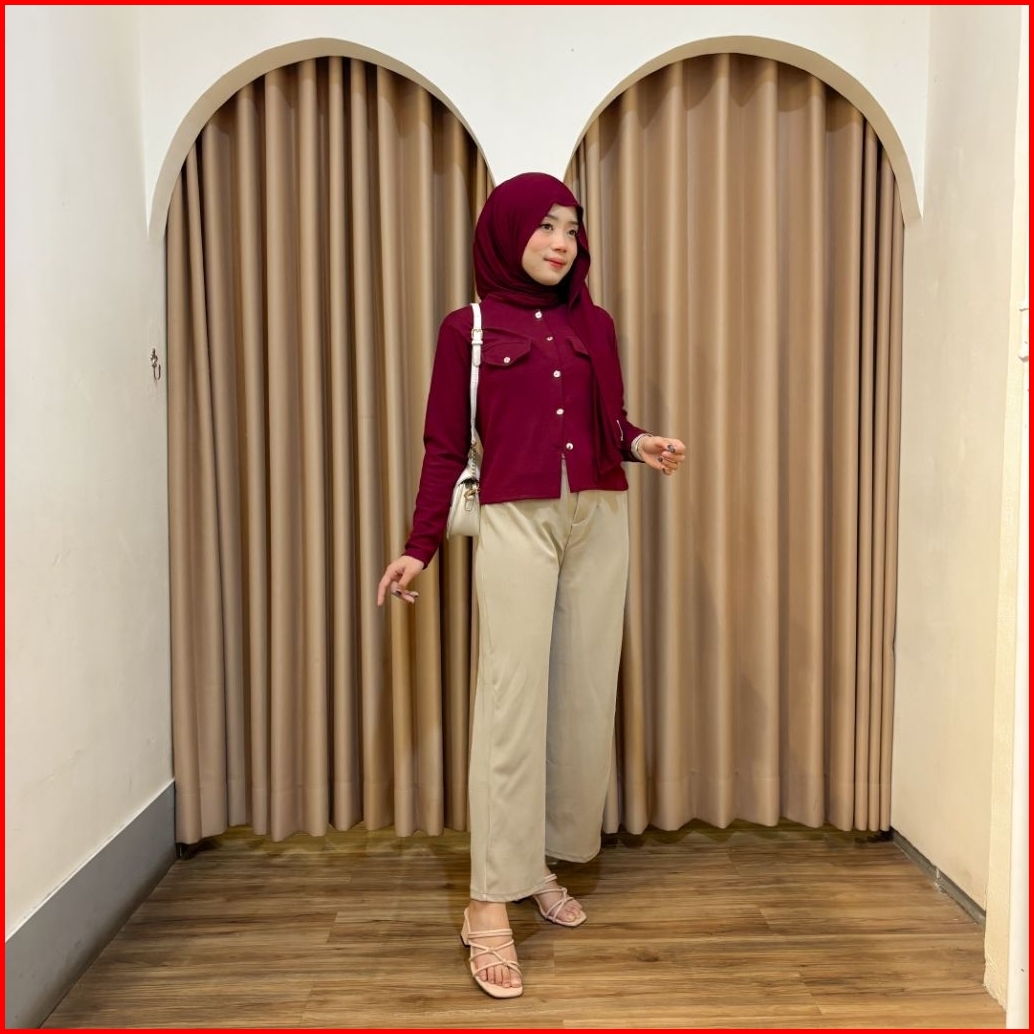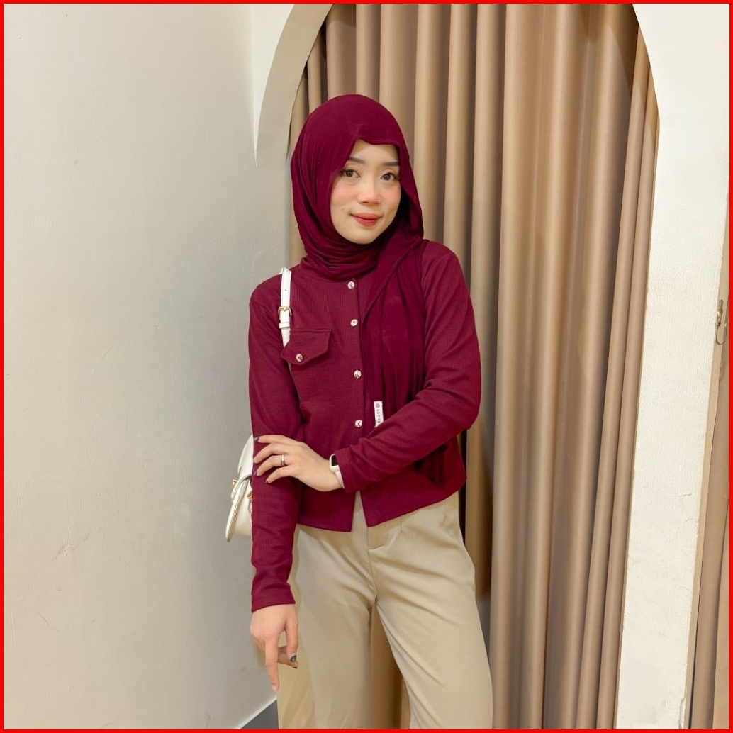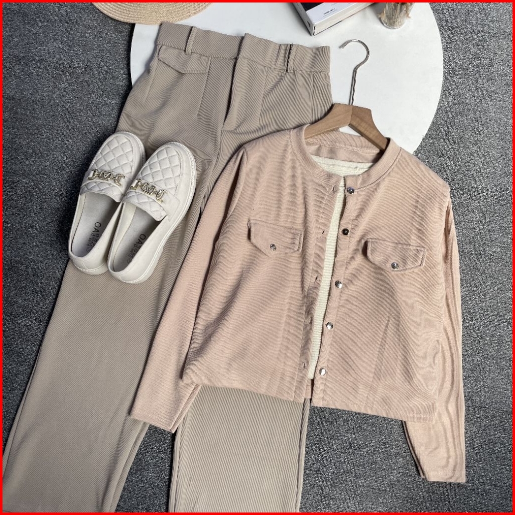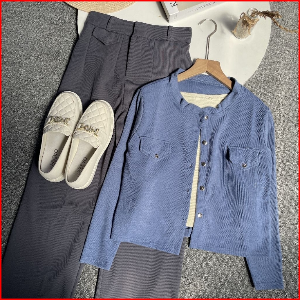 Violine.store - One Set Remaja Wanita Kekinian Korean Style Atasan Cardi Pocket Knit Bawahan Kulot Knit Premium Outfit H