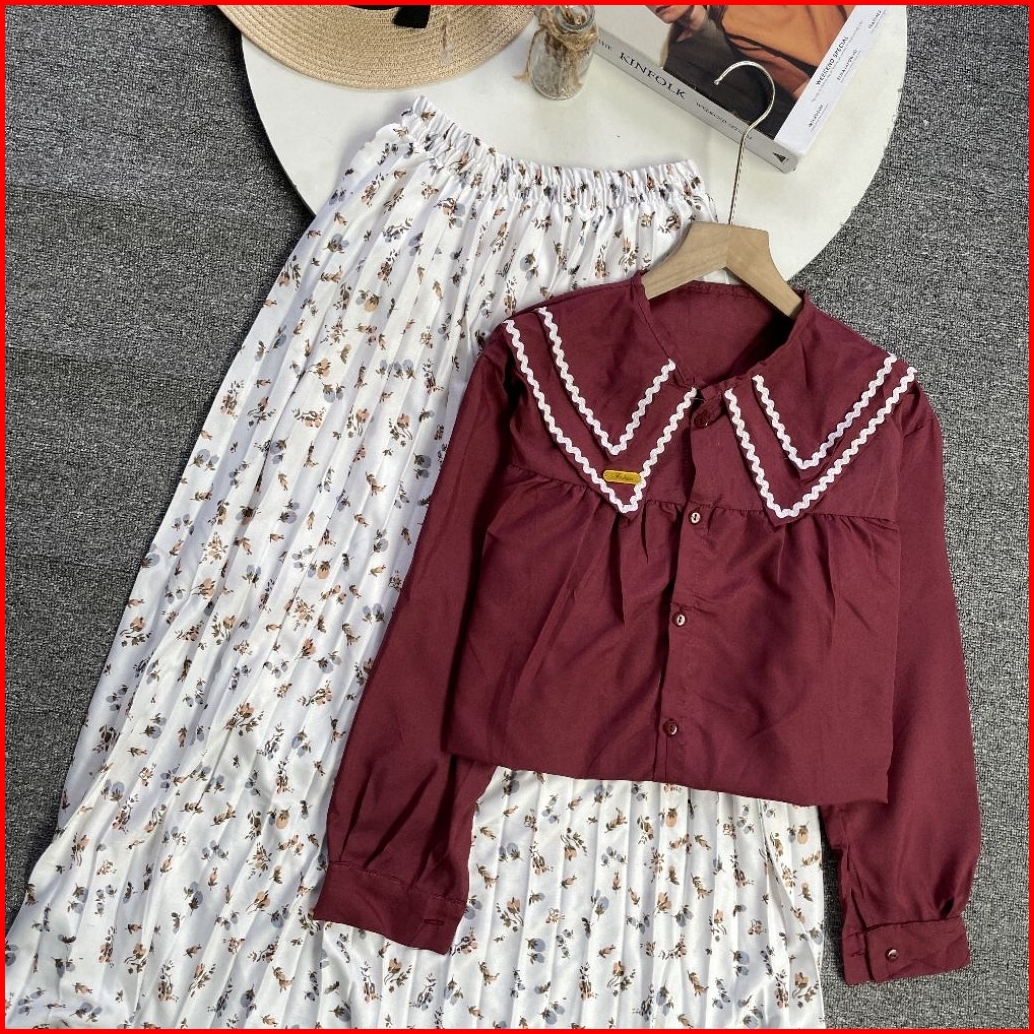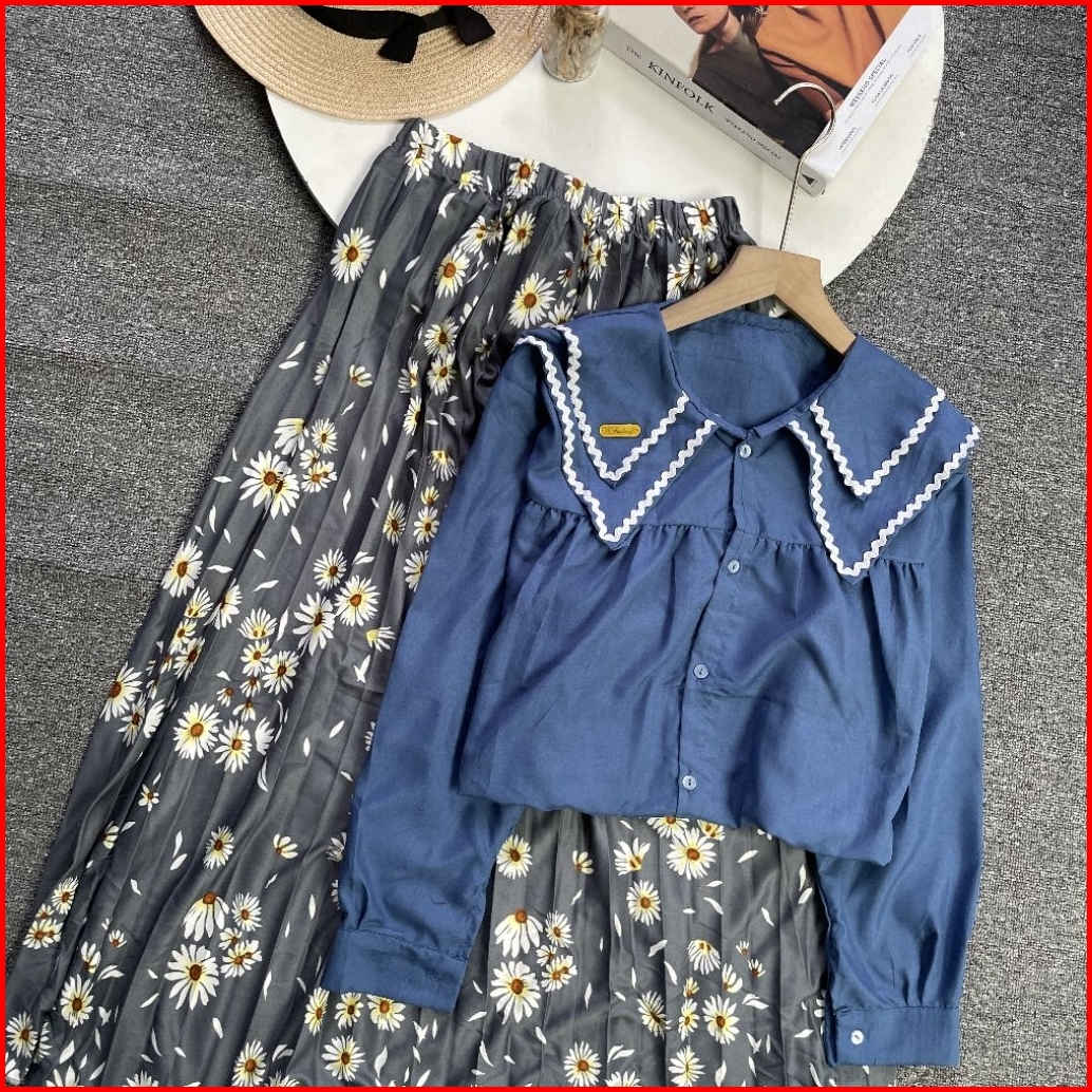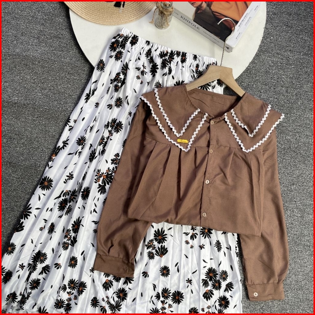 Violine.store - One Set Remaja Korean Style Kekinian Terbaru Atasan Cute Bawahan Rok Bunga Motif Premium Outfit Hangout