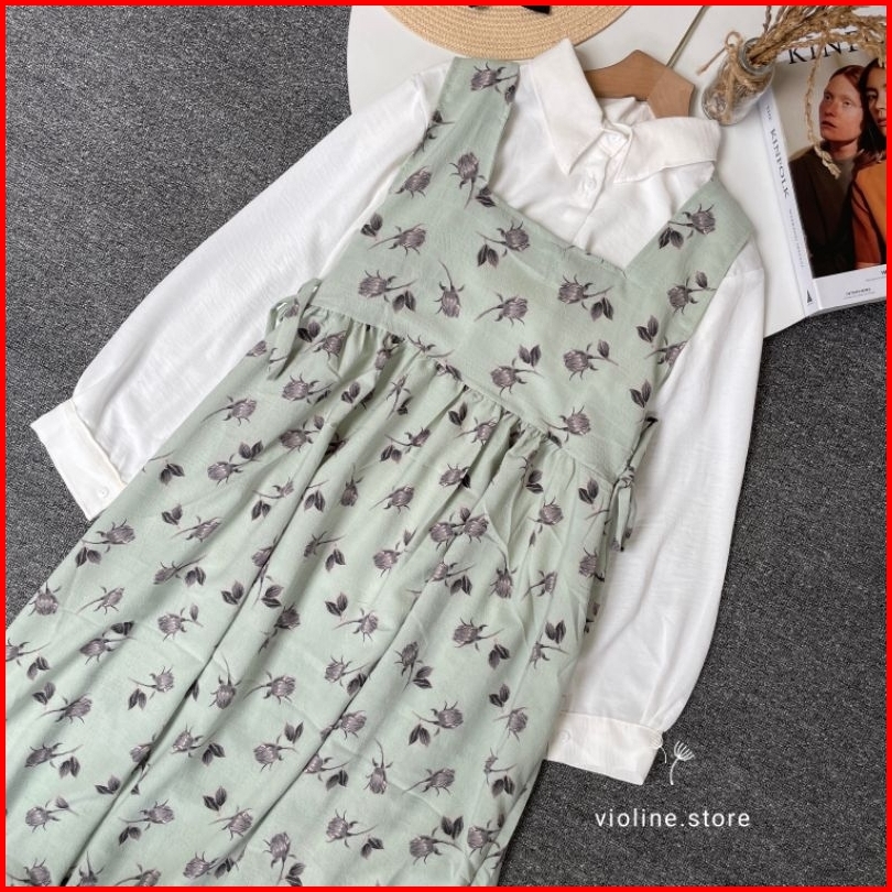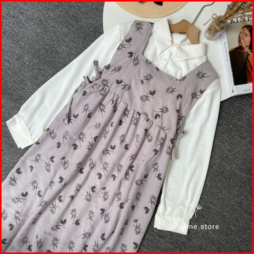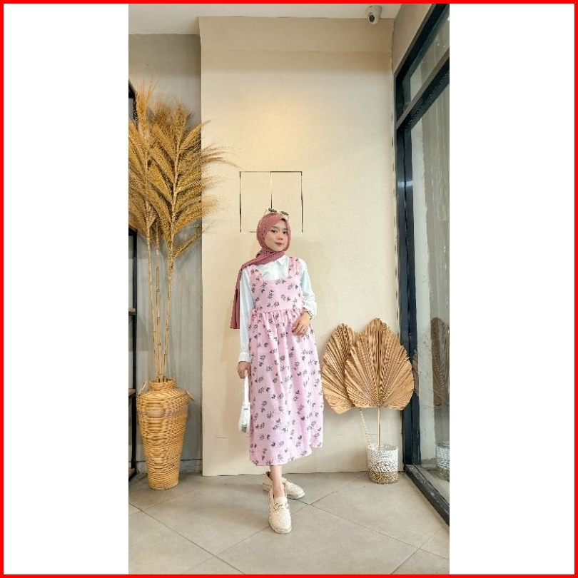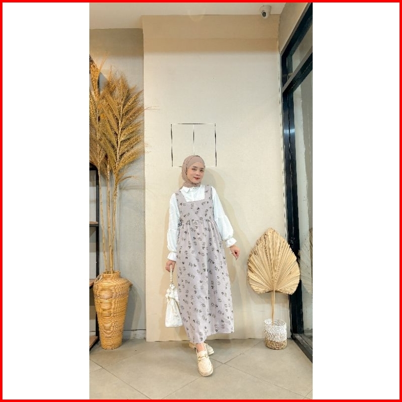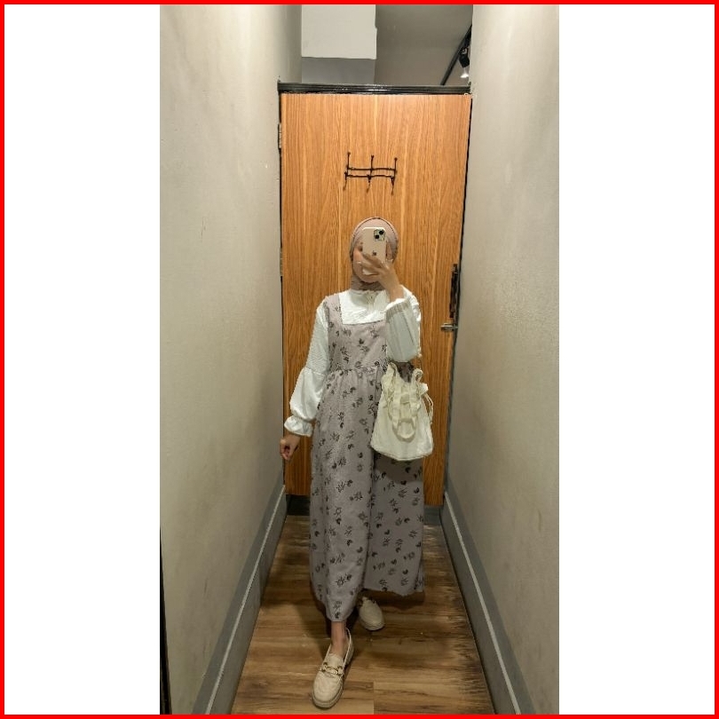 Violine Store - Oneset Wanita Kekinian Overall Motif Kemaja Crinkle Outfit Healing Ootd Kekinian Korean Style 2024
