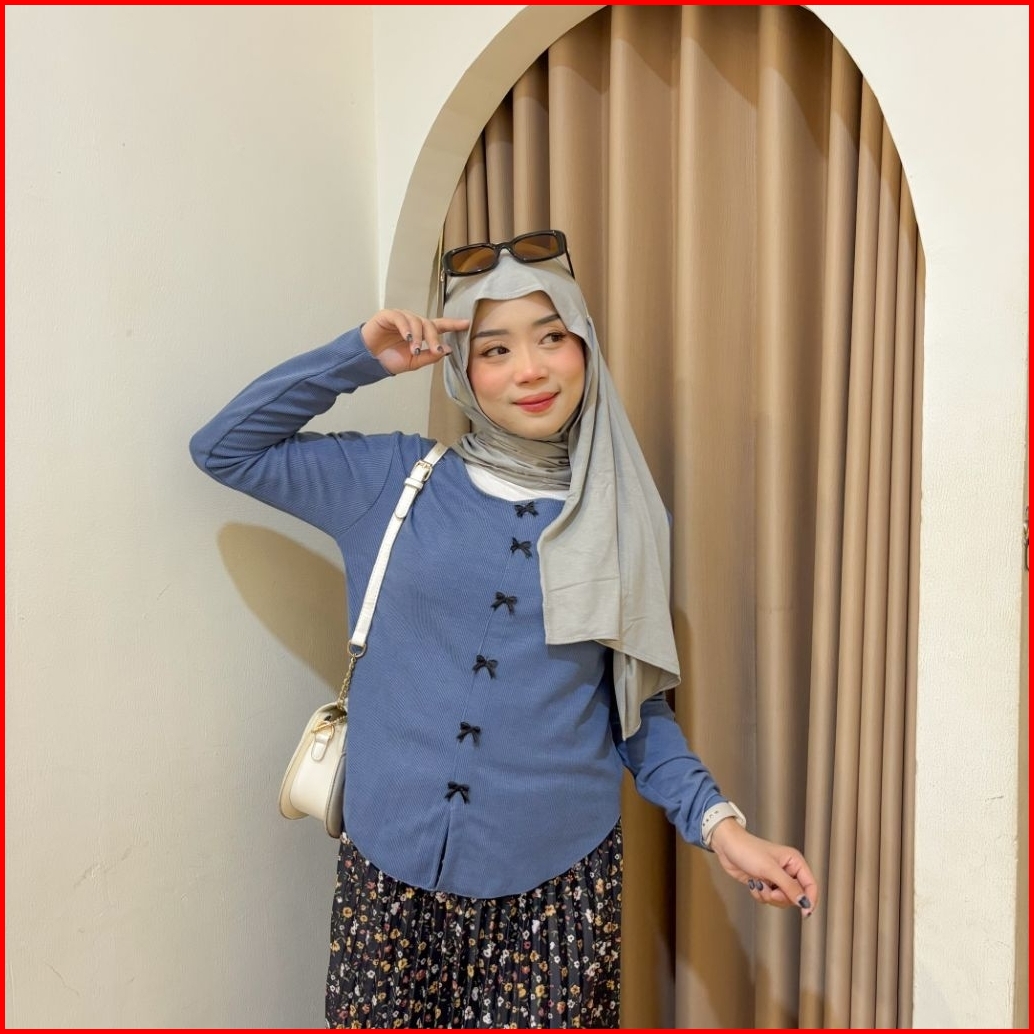 Violine Store - Oneset Setelan Wanita Remaja Kekinian Setelan Rok Panjang Atasan Kaos Pita Cocute Lurus Rok Plisket Moti