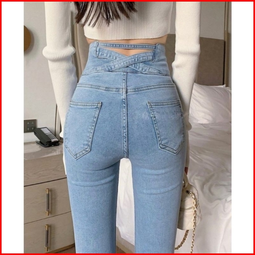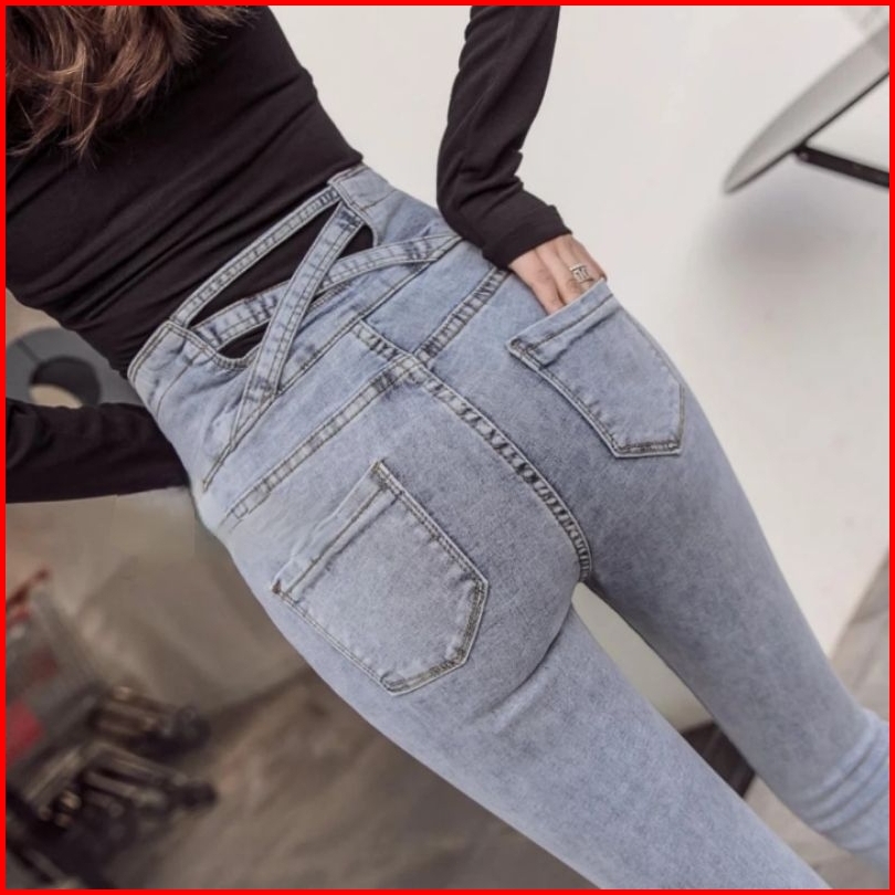 Ralin - Celana Jeans Skinny Highwaist Wanita Silang Belakang Celana Jeans J32 Pensil Stretch Wanita Jeans Skinny Double
