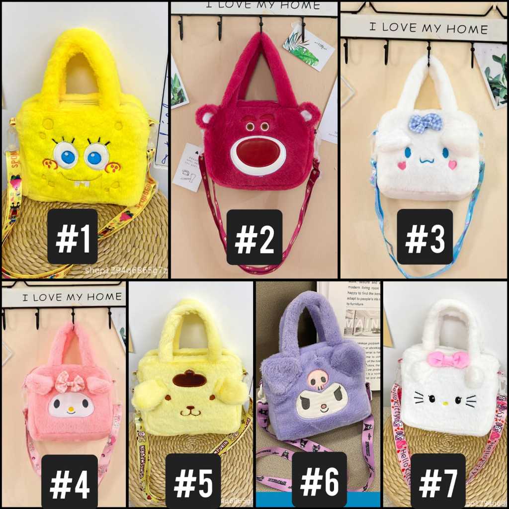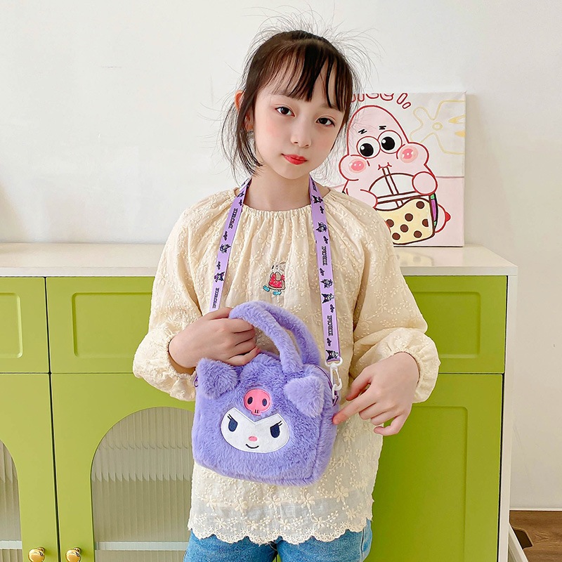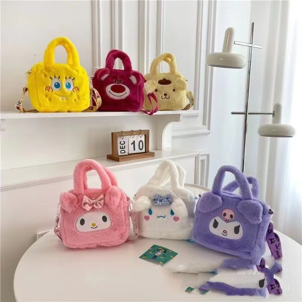 Tas Selempang Sanrio Bulu Kuromi Melodi Cinamorol 2in1 Selempang Dan Tenteng LucuCinnamonroll Shoulder bag Tas Selempang bulu lucu impor Karakter Sanrio My Melody Hello Kitty Kuromi