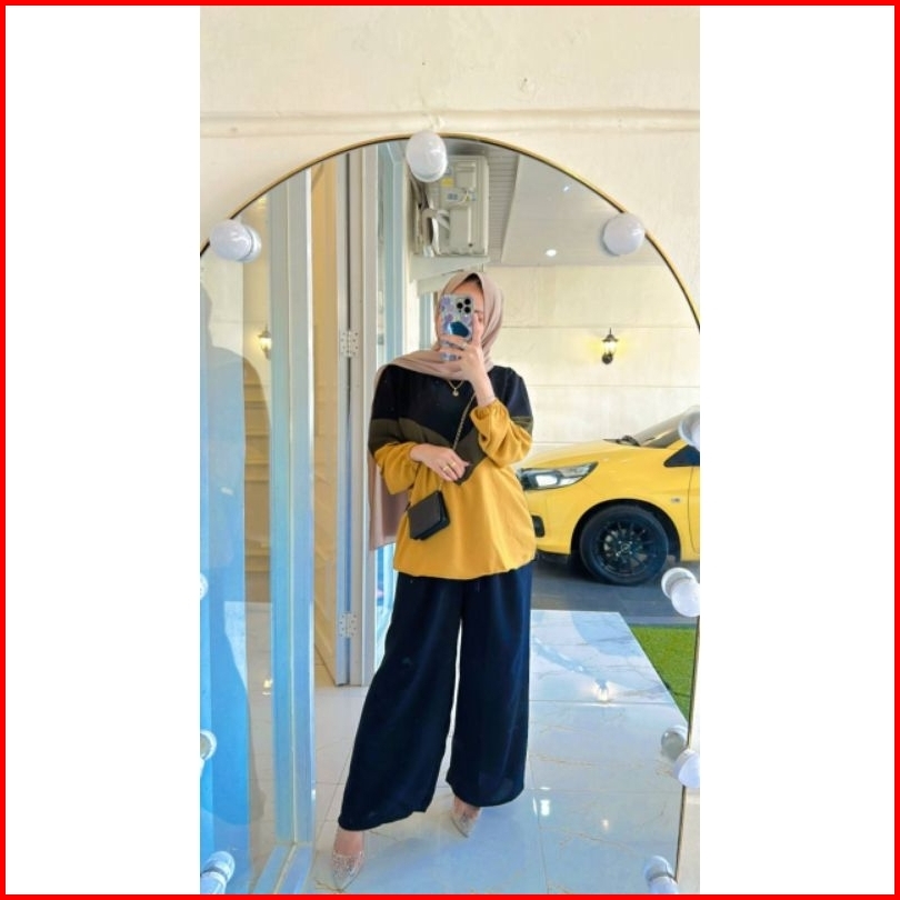 One Set Vey Setelan Wanita Crinkle Airflow Kombinasi